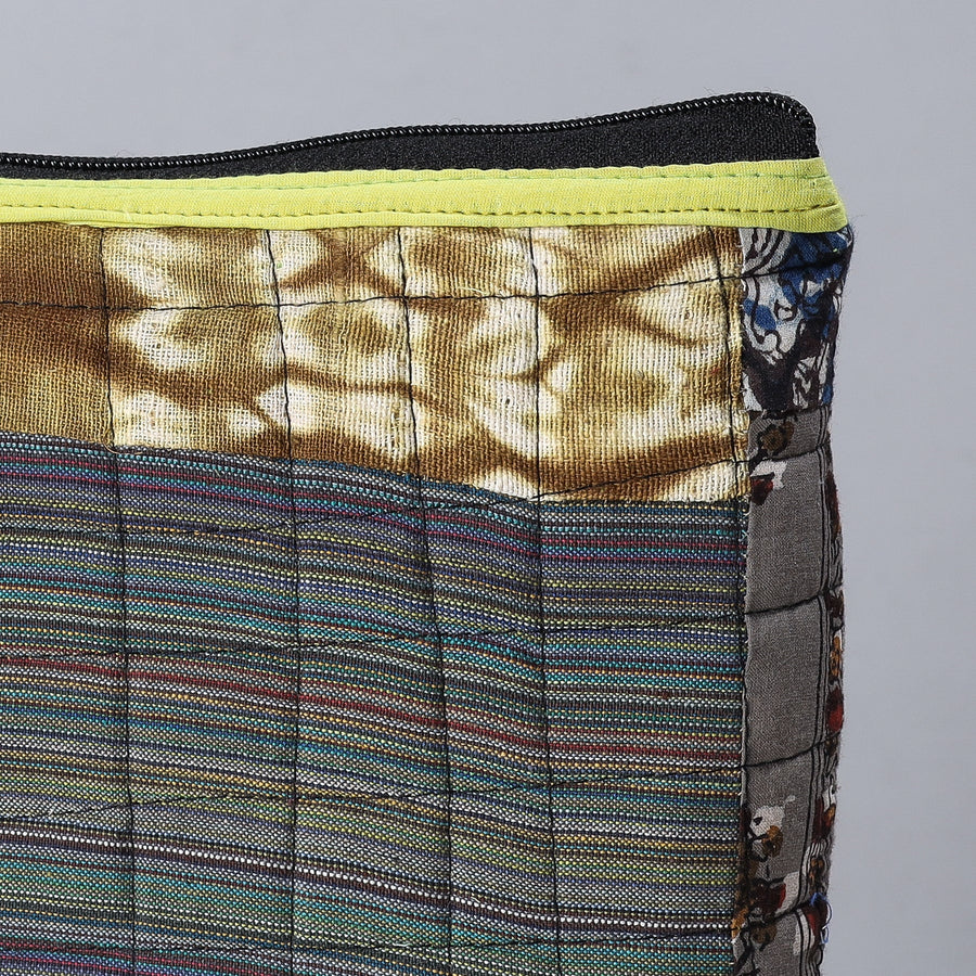 Handmade multipurpose utility pouch made from printed cotton fabric with patchwork quilted filing, Ample space to keep most of your essentials. Textured with handmade textiles of India.