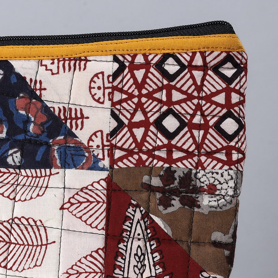 Handmade multipurpose utility pouch made from printed cotton fabric with patchwork quilted filing, Ample space to keep most of your essentials. Textured with handmade textiles of India.