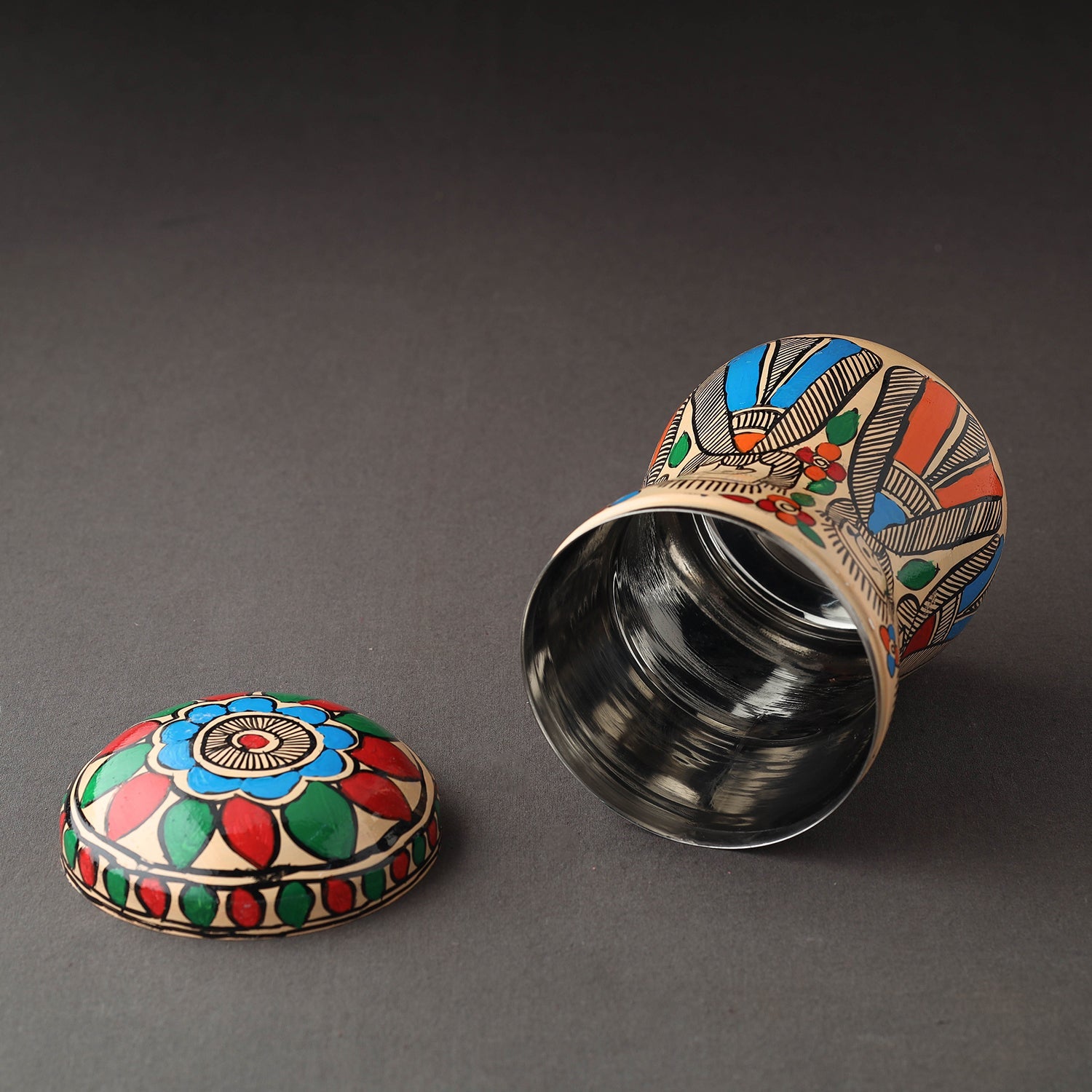 Beige godna madhubani handpainted multi utility canister with waterproof oil based paint on very high quality stainless steel by the artisans of Bihar.