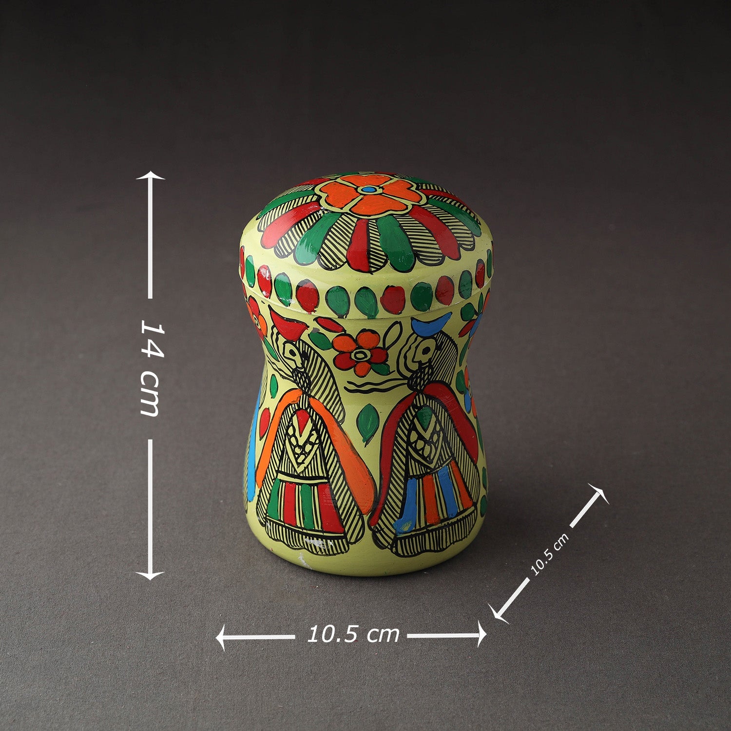 Green godna madhubani handpainted multi utility canister with waterproof oil based paint on very high quality stainless steel by the artisans of Bihar.