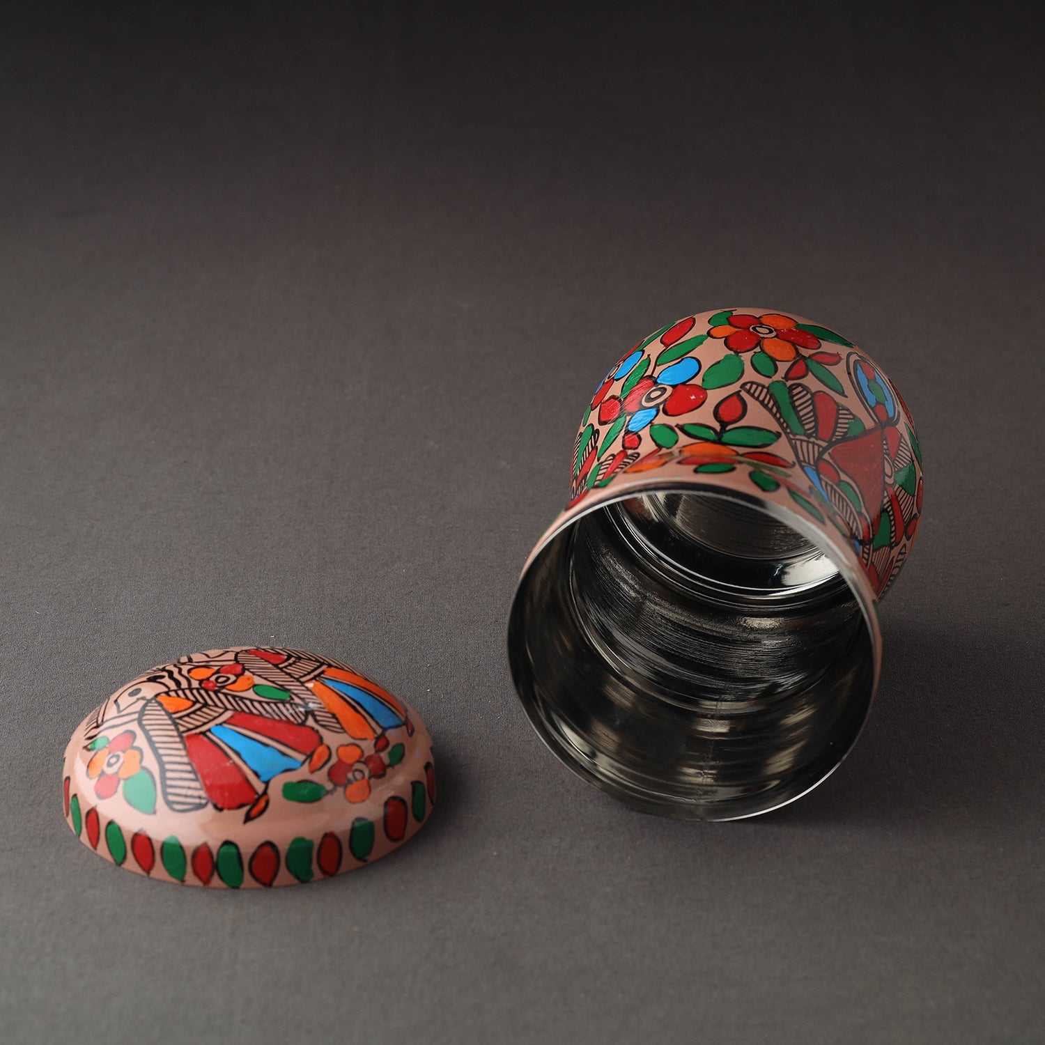 Brown godna madhubani handpainted multi utility canister with waterproof oil based paint on very high quality stainless steel by the artisans of Bihar.