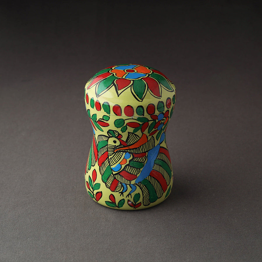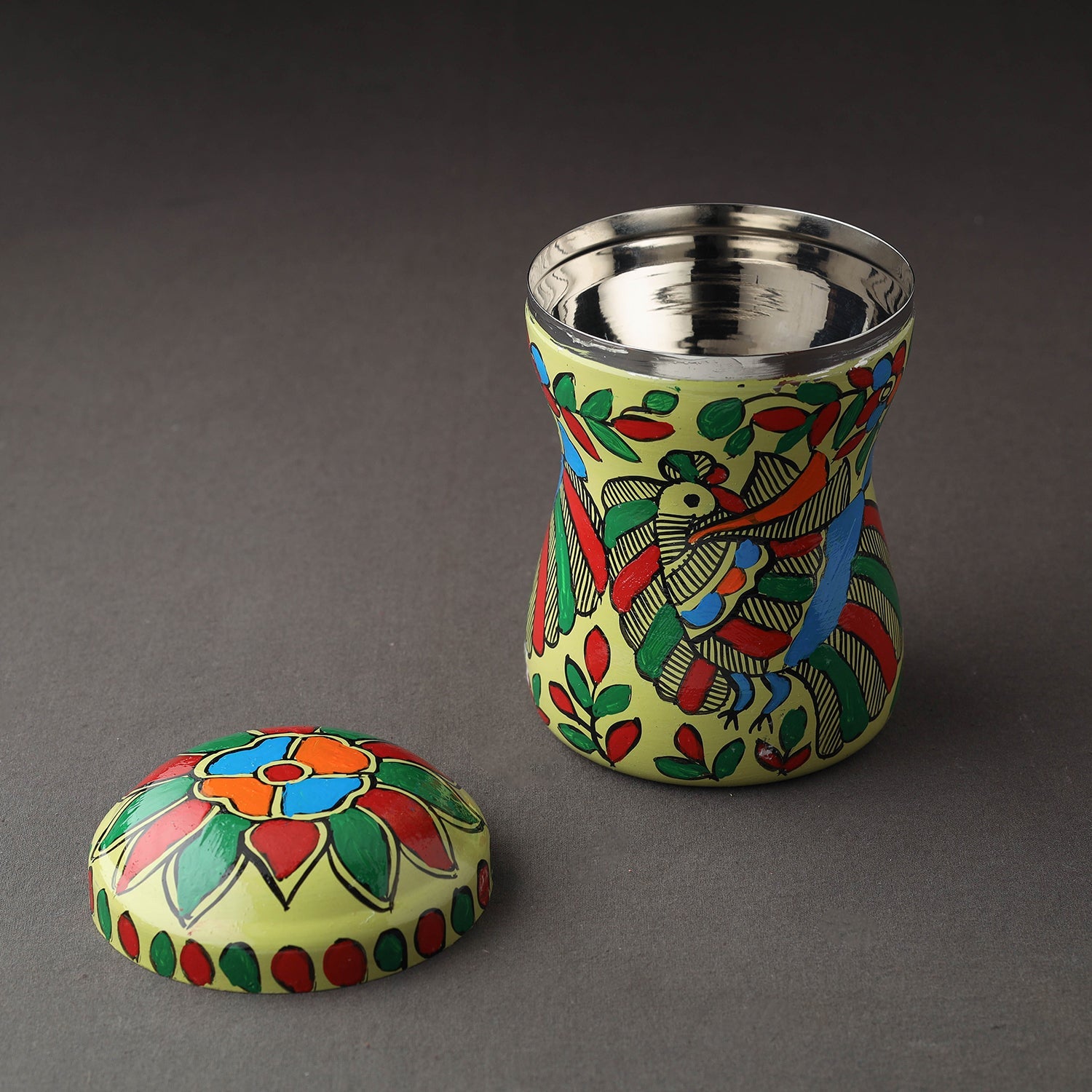 Green godna madhubani handpainted multi utility canister with waterproof oil based paint on very high quality stainless steel by the artisans of Bihar.