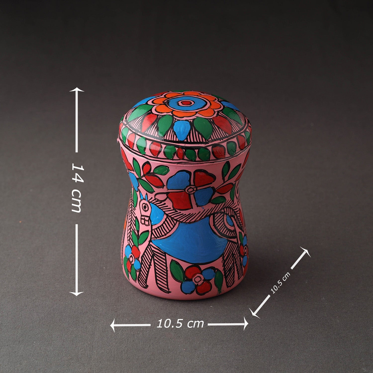 Pink godna madhubani handpainted multi utility canister with waterproof oil based paint on very high quality stainless steel by the artisans of Bihar.