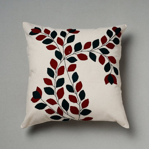 Red - Pipli Applique Work Cotton Cushion Cover (16 x 16 in)