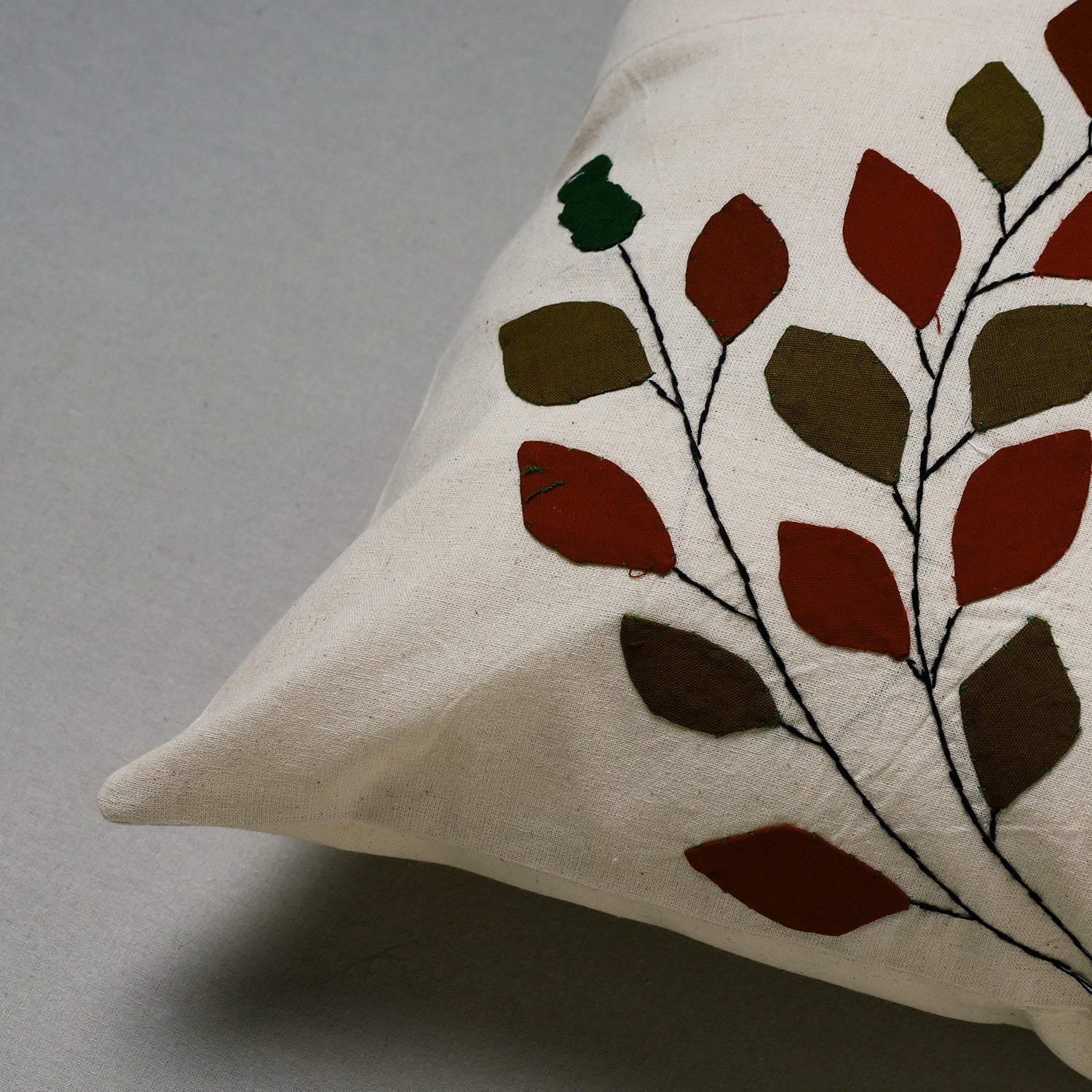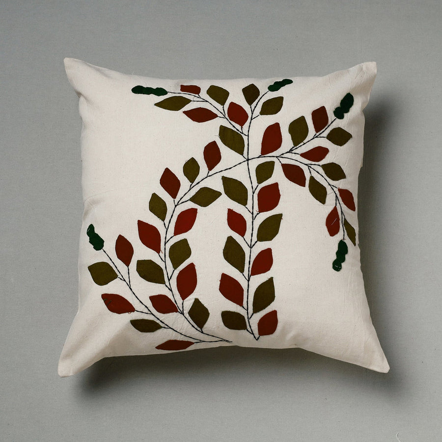 Tribal design hand stitched pipli applique work cushion cover made from pure cotton fabrics, handcrafted by artisans of Pipili, the hub of traditional art & craft in Odisha.
