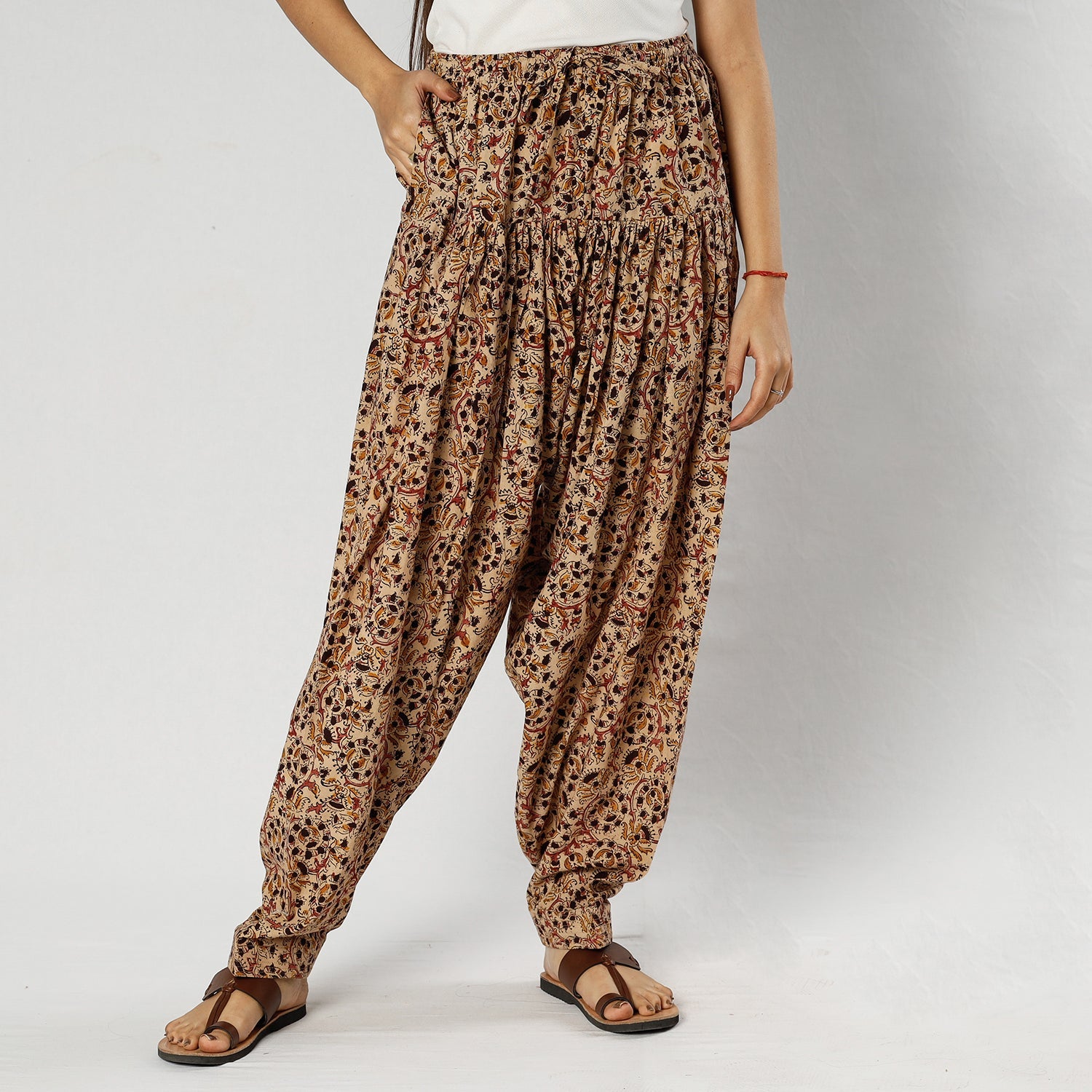 Feel and look beautiful in this pedana kalamkari block print cotton elasticated casual salwar with side pockets. This cotton salwar makes you feel comfortable and stylish all day long. This salwar is perfect for your daily outings.