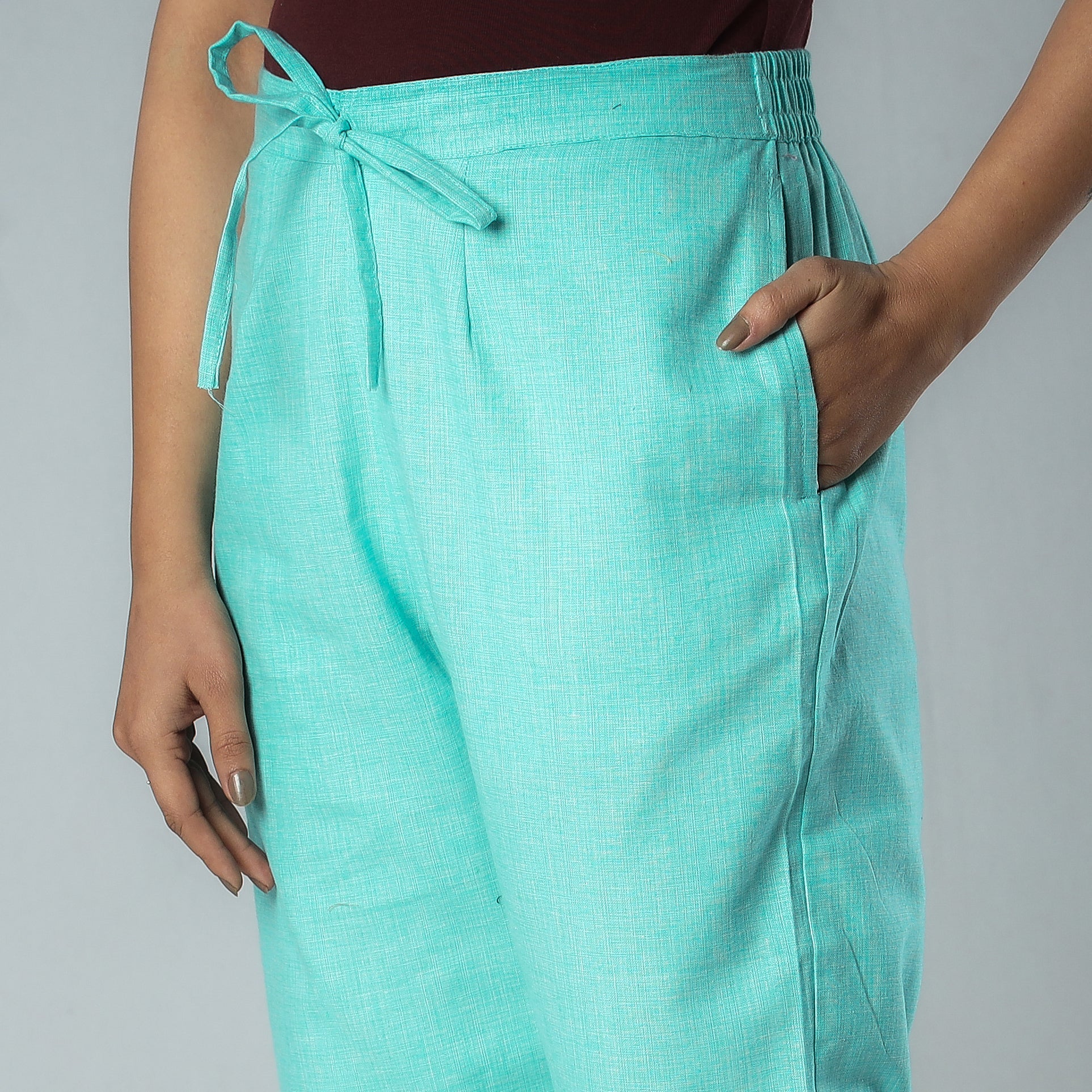Feel and look beautiful in this cotton plain relaxed-fit pant with side pockets. This cotton pant makes you feel comfortable and stylish all day long. This pant is perfect for your daily outings.