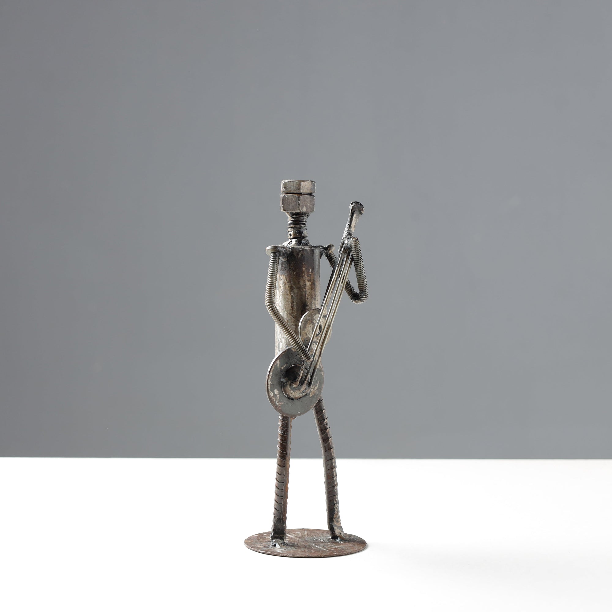 This handmade recycled metal sculpture is made by designing, collecting scraps, welding, colouring, and doing the final polish by Debabrata Ruidas from West Bengal.