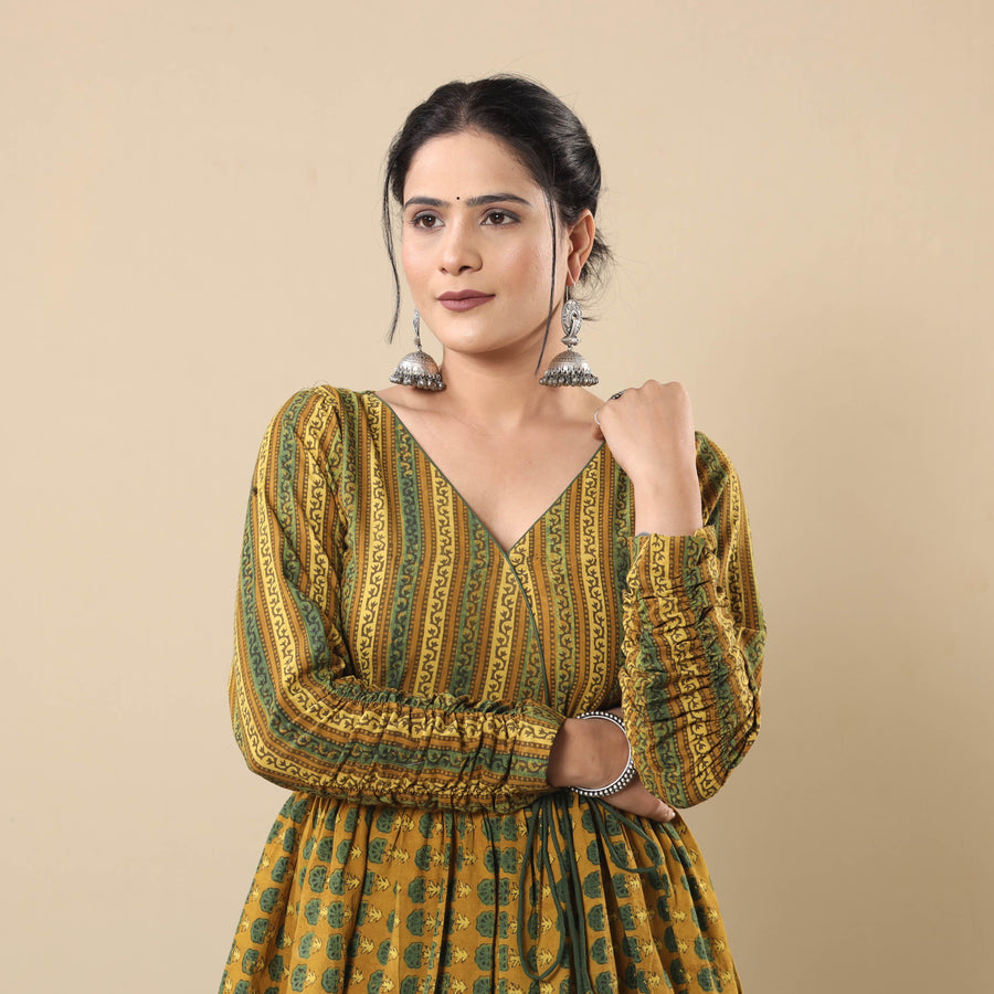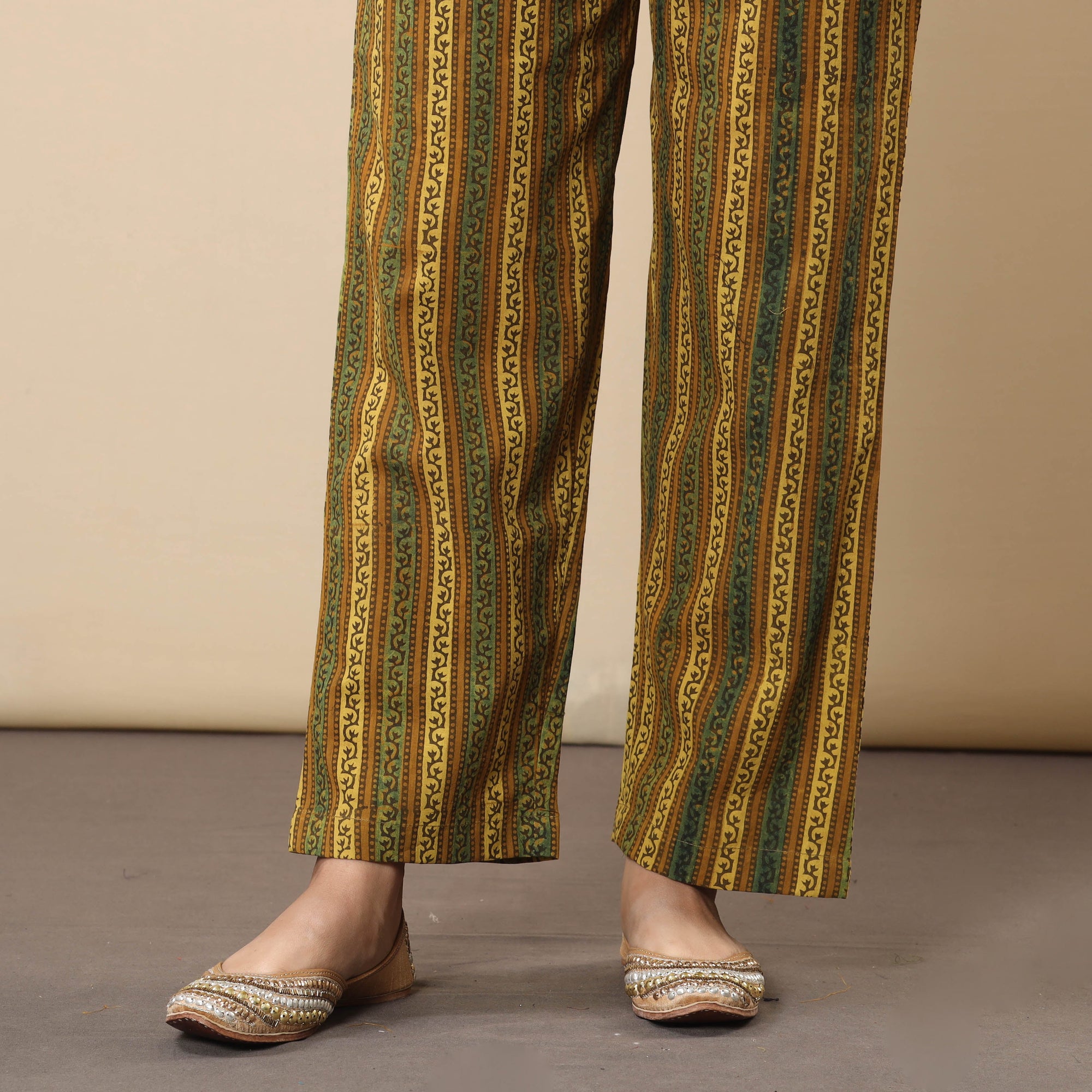 Look and feel beautiful in this uniquely designed ajrakh block printed cotton flared gher kurta with pant. This cotton kurta makes you comfortable with ease all day long. This kurta is perfect for your daily outing and for a special occasion.