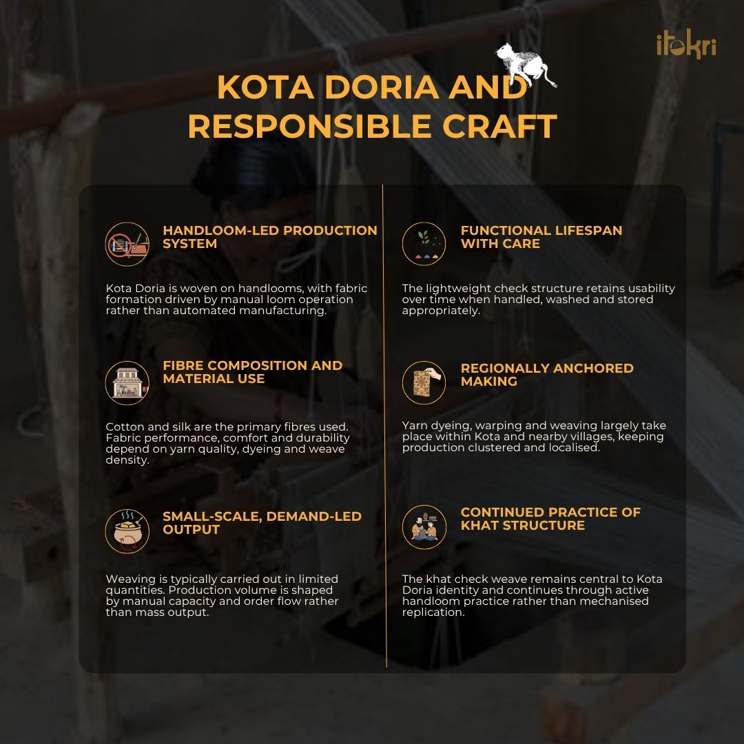 Kota Dori is a special woven fabric with a unique checkered pattern made on fine silk, cotton or a blend of the two. Cotton gives the fabric strength, while silk makes the fabric more lustrous and gives it a softer feel.