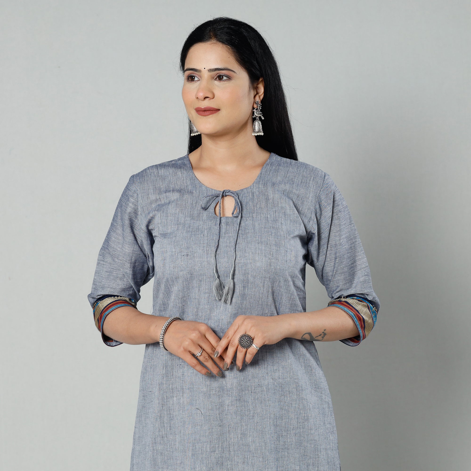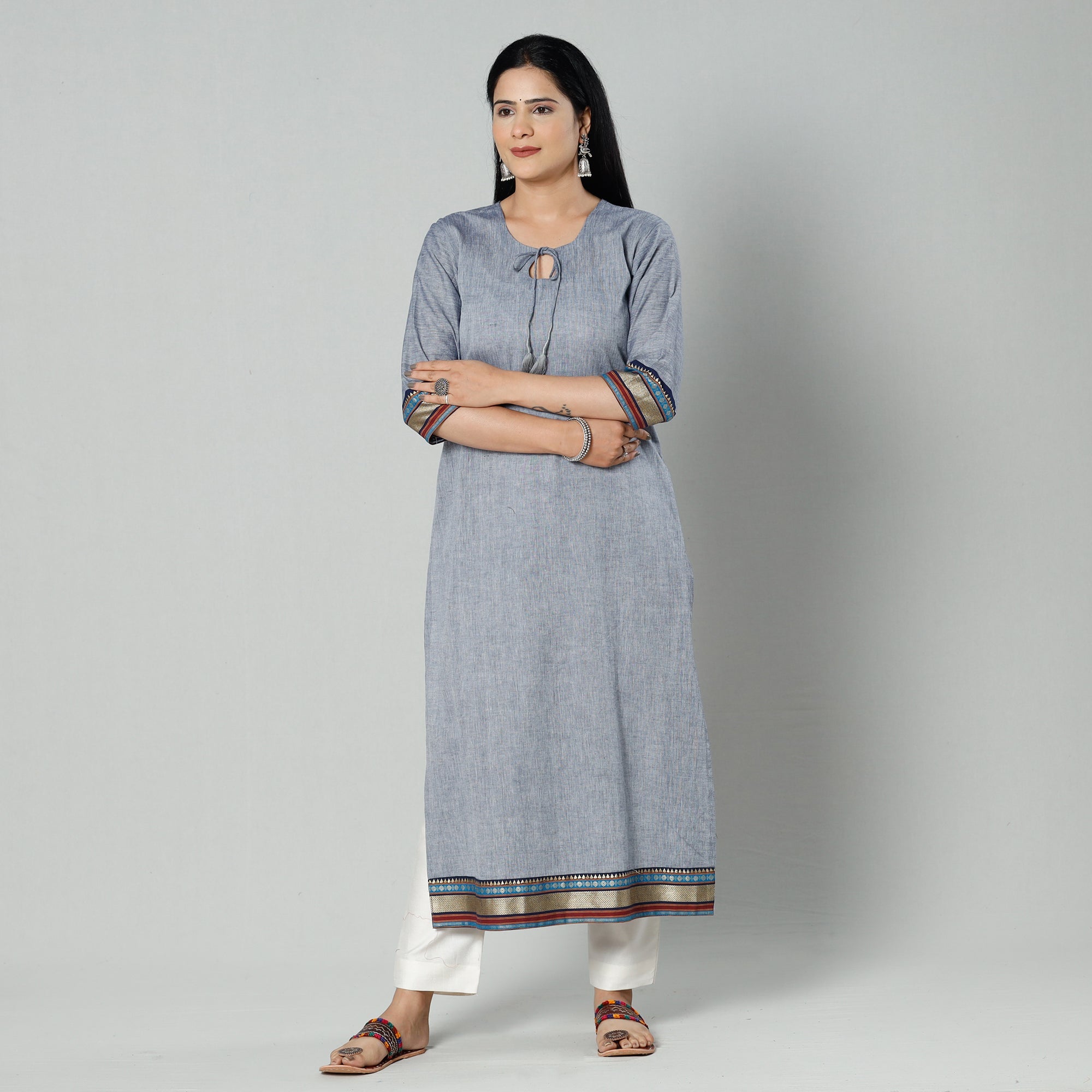 Look and feel beautiful in this uniquely designed dharwad cotton long kurti with side pocket. This cotton kurti makes you comfortable with ease all day long.