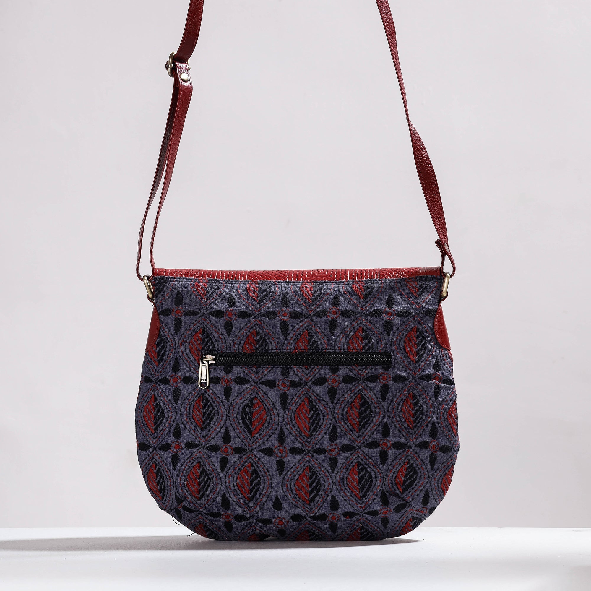 Purpe handcrafted embossed leather flap sling bag with adjustable sling made by the master artisans of Kolkata, West Bengal. It has one zipper pocket outside & one zipper or one simple pocket inside with cotton lining inside. These products are made from the embossed technique on cruelty free leather. Embossed leather products are made using vegetable tanned leather. Every piece is embossed using a metal die, after which it is individually painted by hand using spirit colours. Each product is then constructed by hand. With time it becomes softer and deeper in colour as is the natural characteristic of leather.