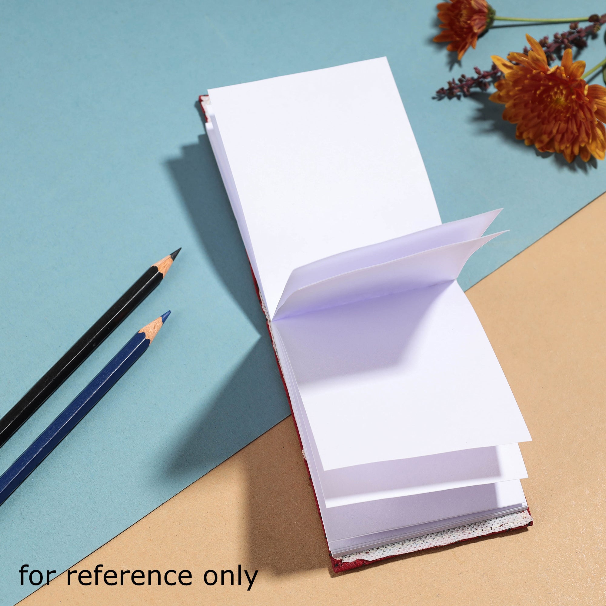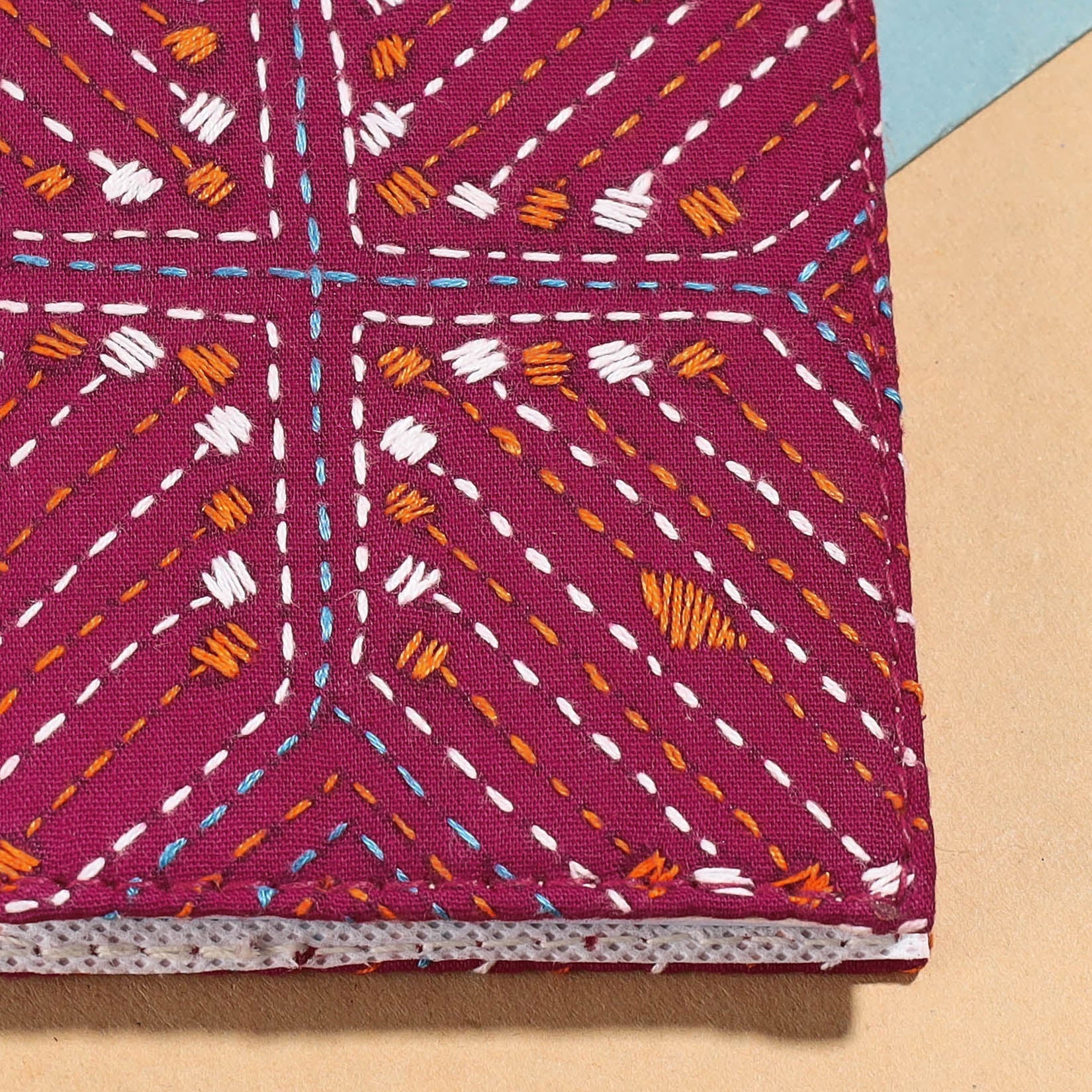 Fine quality handcrafted Kantha work notepad from West Bengal. This notepad has a soft bound cover and hand embroidery done in the traditional Kantha style with colourful threads.