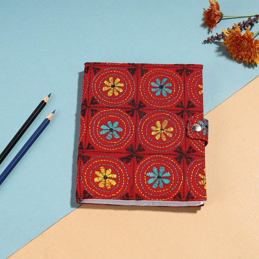Fine quality handcrafted Kantha work notepad from West Bengal. This notepad has a soft bound cover and hand embroidery done in the traditional Kantha style with colourful threads.