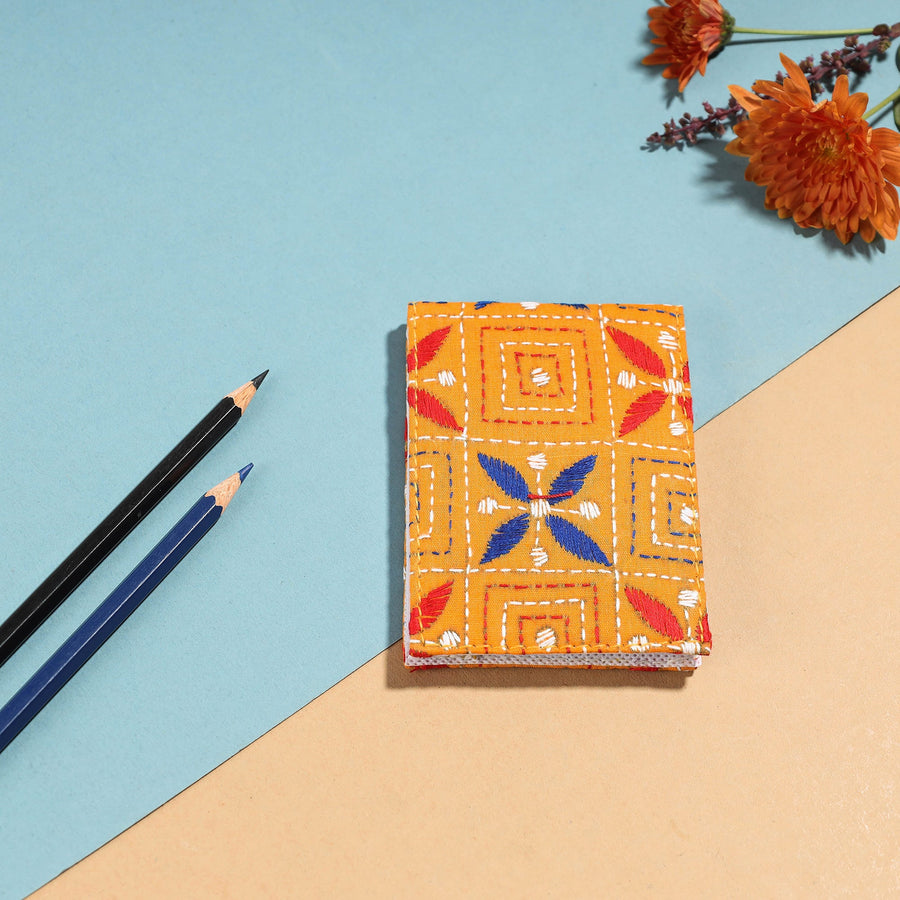 Fine quality handcrafted Kantha work notepad from West Bengal. This notepad has a soft bound cover and hand embroidery done in the traditional Kantha style with colourful threads.