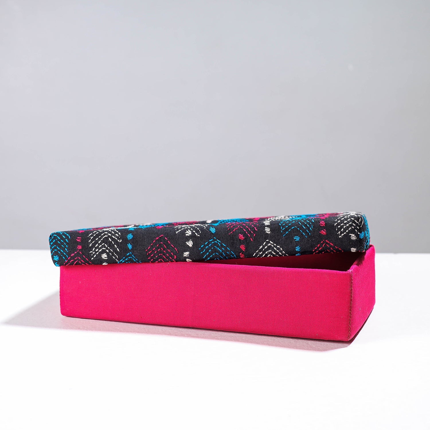 Fine quality, pink handcrafted kantha-work tissue box from West Bengal. Made from hardboard, the box is lined with kantha work fabric. This tissue box is a beautiful and decorative box especially made for keeping tissues and paper napkins. Long lasting & sturdy material.