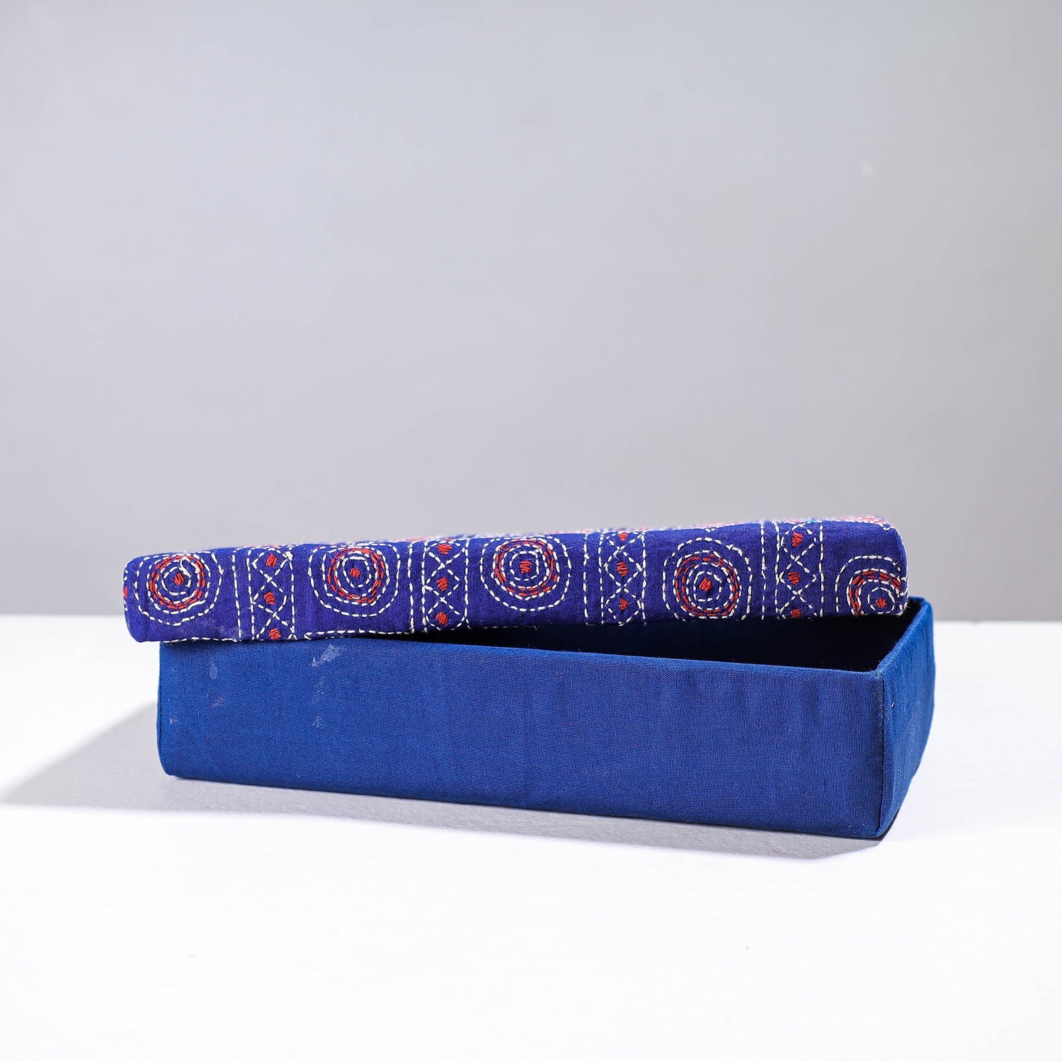 Fine quality, blue handcrafted kantha-work tissue box from West Bengal. Made from hardboard, the box is lined with kantha work fabric. This tissue box is a beautiful and decorative box especially made for keeping tissues and paper napkins. Long lasting & sturdy material.