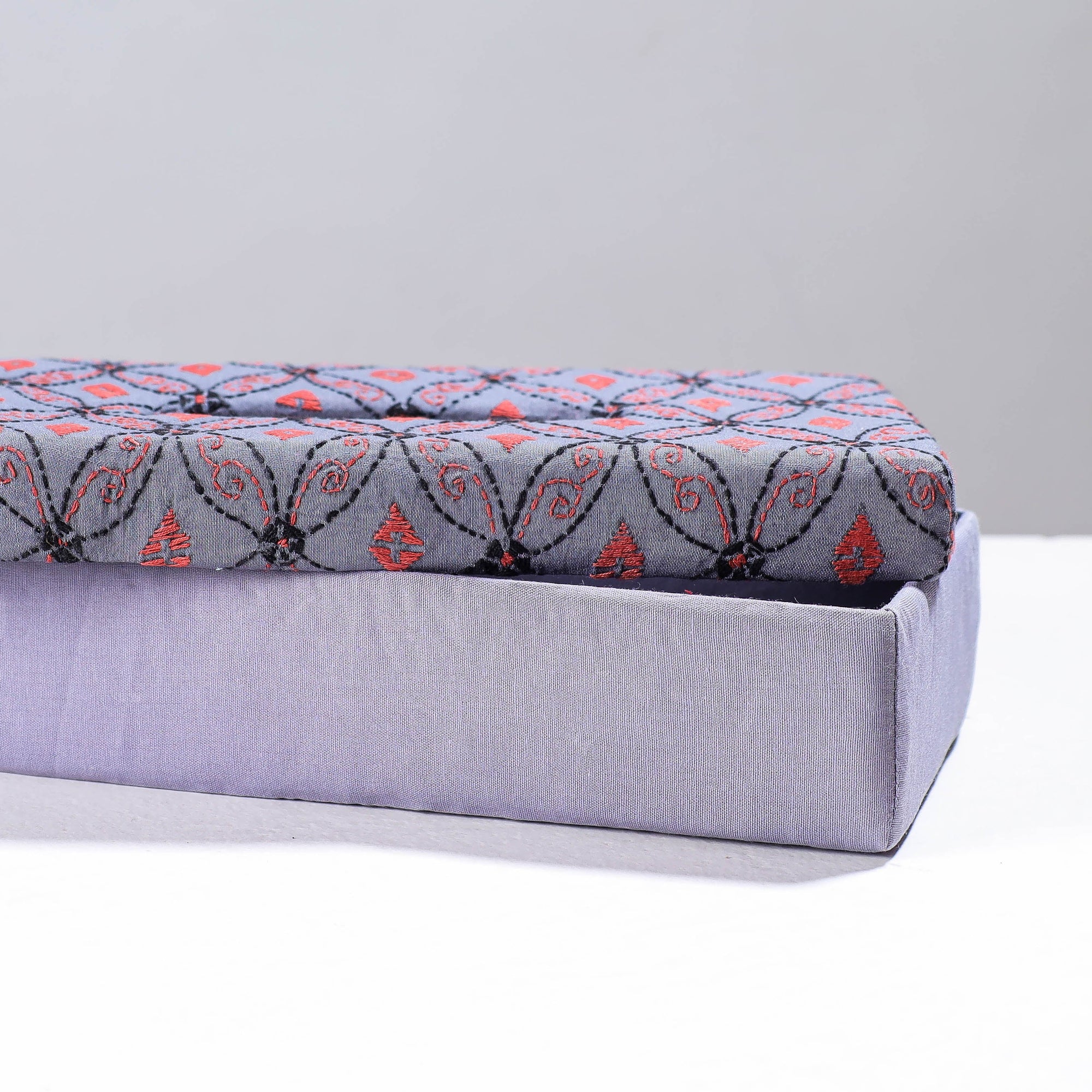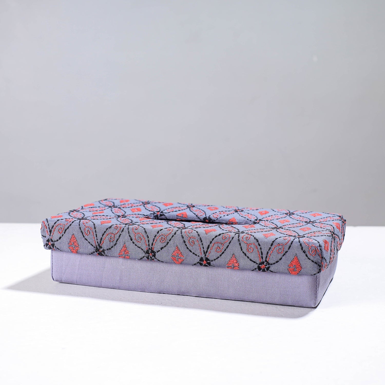Fine quality, purple handcrafted kantha-work tissue box from West Bengal. Made from hardboard, the box is lined with kantha work fabric. This tissue box is a beautiful and decorative box especially made for keeping tissues and paper napkins. Long lasting & sturdy material.
