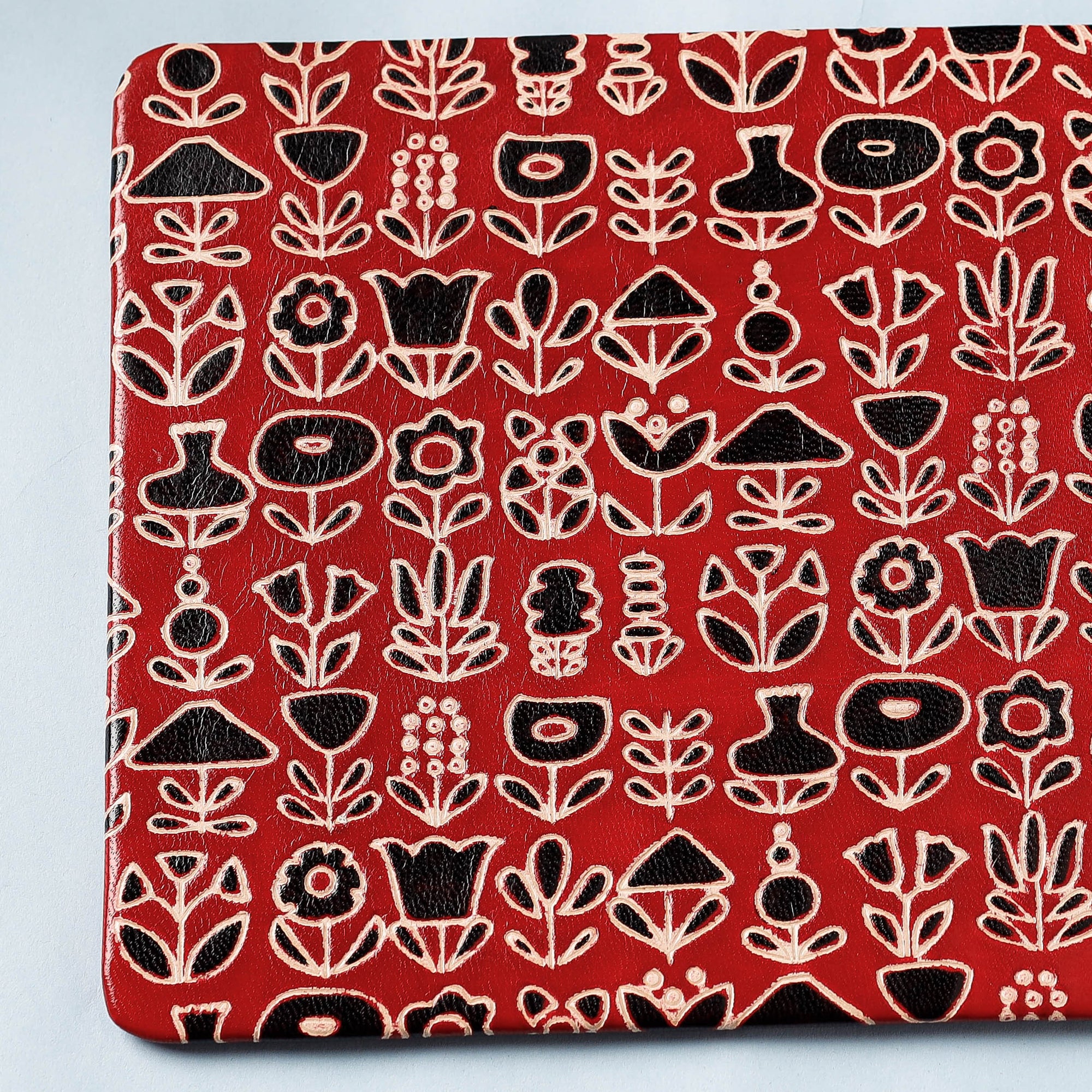 Santiniketan Leather Goods are the leather products produced in Santiniketan and the villages near Kolkata, West Bengal, India. The material used is vegetable tanned leather, patterned with overlap dyeing.