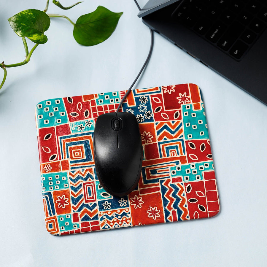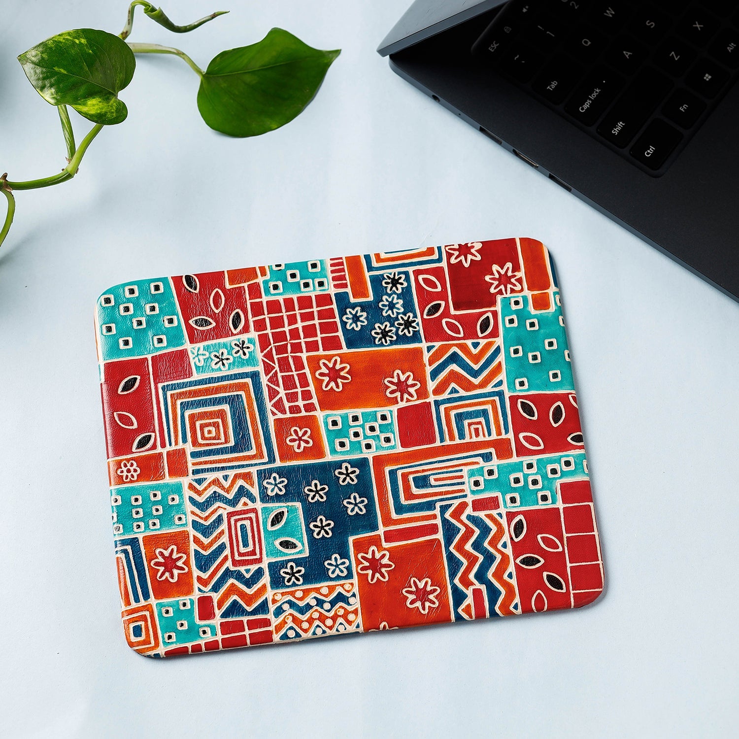 Fine quality pure leather embossed mouse pad handcrafted by the master artisans of West Bengal. These products are made from the embossed technique on cruelty free leather. Embossed leather products are made using vegetable tanned leather. Every piece is embossed using a metal die, after which it is individually painted by hand using spirit colours. Each product is then constructed by hand. With time it becomes softer and deeper in colour as is the natural characteristic of leather.