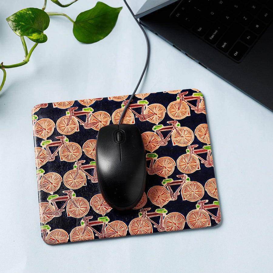 Fine quality pure leather embossed mouse pad handcrafted by the master artisans of West Bengal. These products are made from the embossed technique on cruelty free leather. Embossed leather products are made using vegetable tanned leather. Every piece is embossed using a metal die, after which it is individually painted by hand using spirit colours. Each product is then constructed by hand. With time it becomes softer and deeper in colour as is the natural characteristic of leather.
