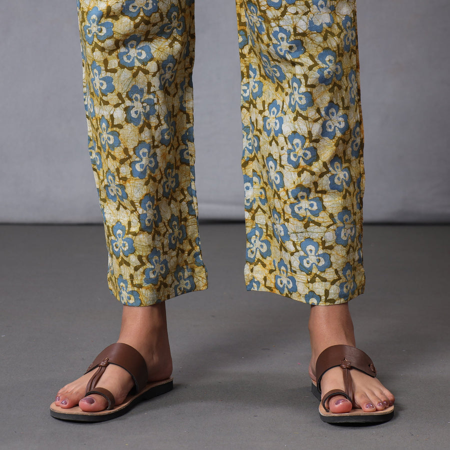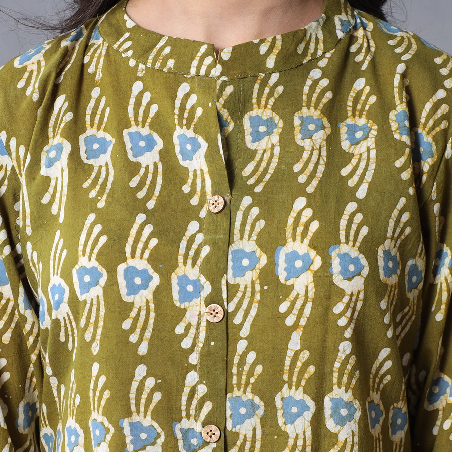 Look and feel beautiful in this uniquely designed hand-batik printed cotton side pocket long kurta with dupatta & cotton palazzo set. This suit is perfect for your special occasion. Batik is a technique of wax-resist dyeing applied to whole cloth, or cloth made using this technique. The traditional designs and motifs in Indian batik are often passed down from one generation to another.