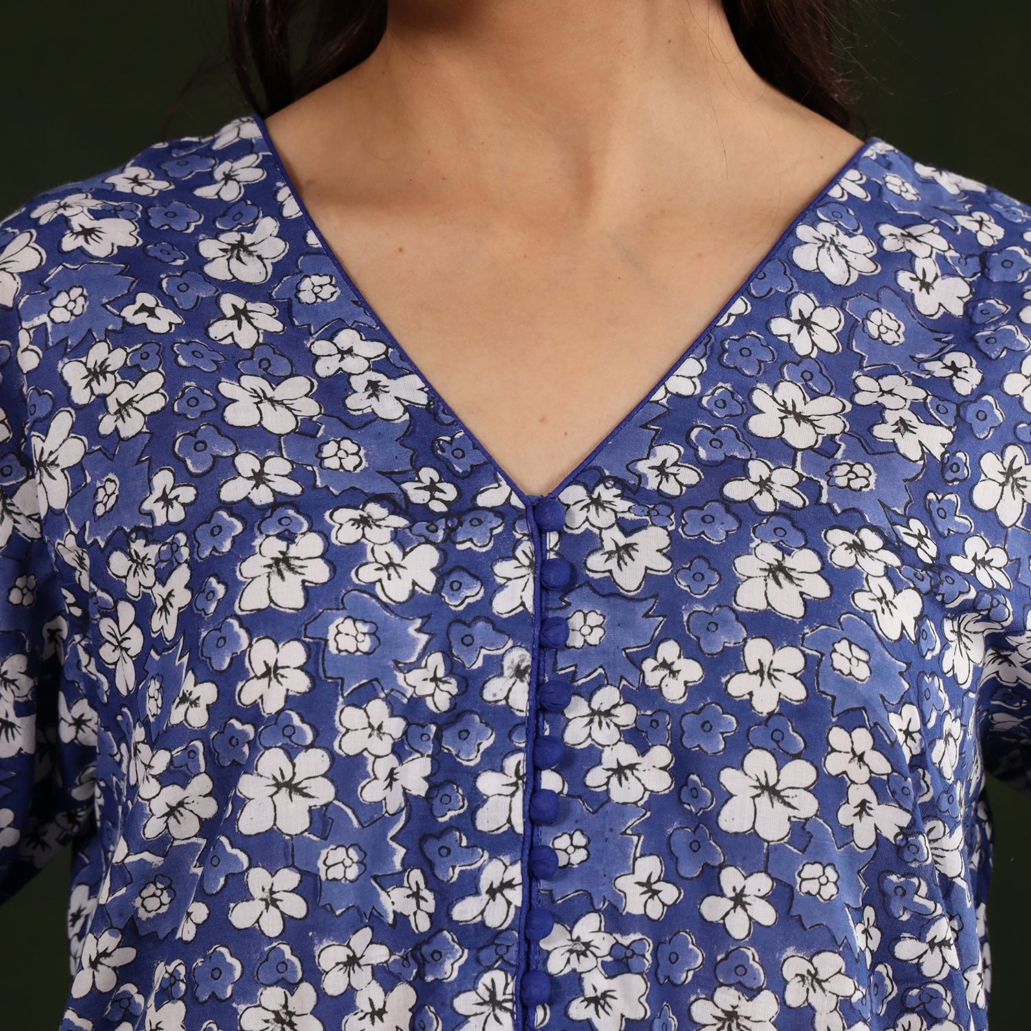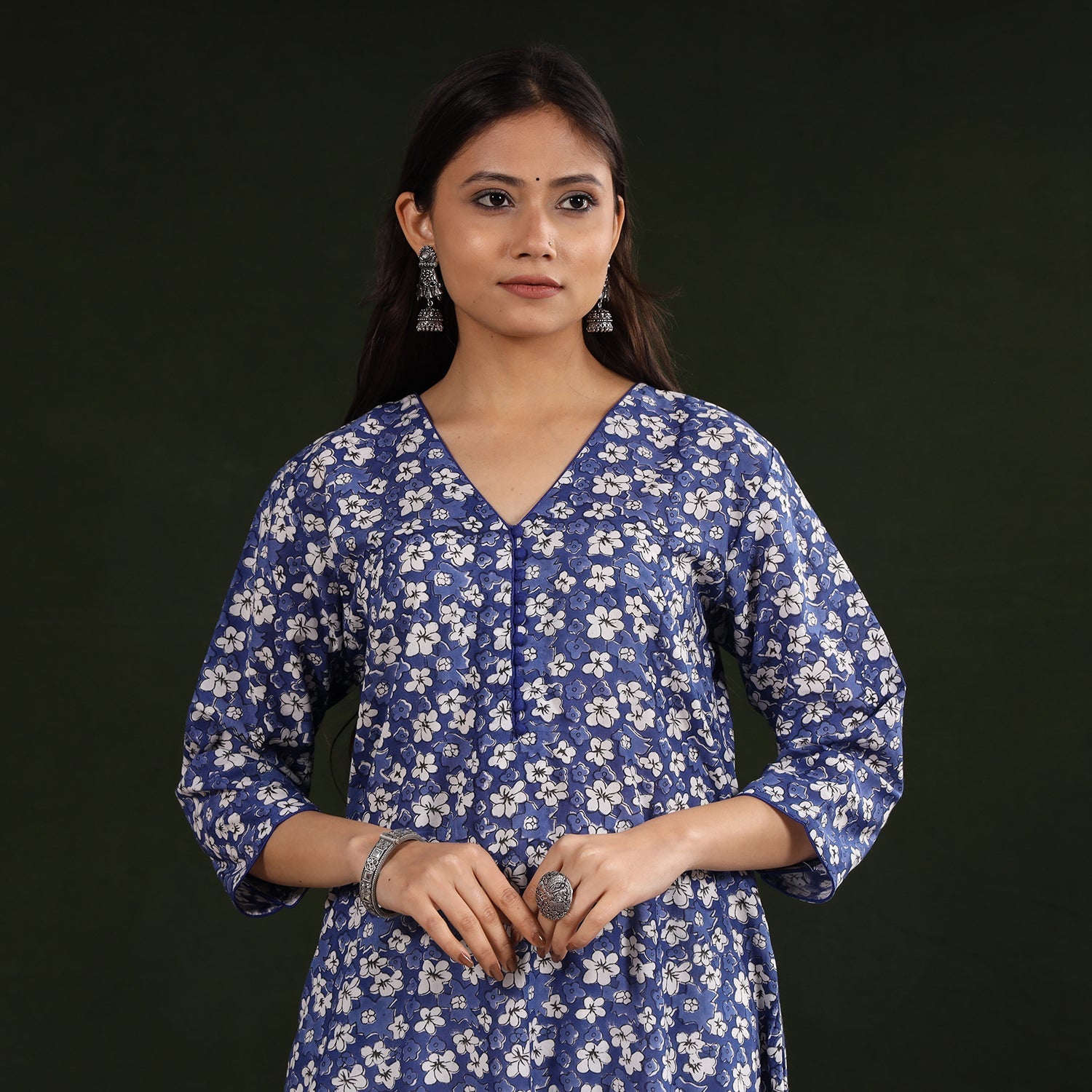 Look effortlessly elegant in this sanganeri block print A-line kurta. Crafted from soft cotton, it features delicate floral motifs inspired by the traditional craft of Sanganer, Rajasthan. Designed for a relaxed fit with a practical side pocket, it’s ideal for both casual outings and intimate gatherings. Add a touch of timeless charm to your everyday wardrobe with this graceful kurta.