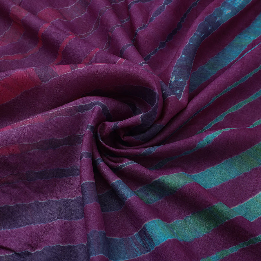 Fine quality purple original leheriya tie-dye pure tussar silk handloom fabric. Azo free dye has been used to make this fabric. The wavy patterns on this fabric have been dyed using leheriya tie & dye technique through a traditional process by the master artisan family of Badshah Miyan from the state of Rajasthan. Tussar silk is known for its unique texture, sheen of silk, and feel of cotton.