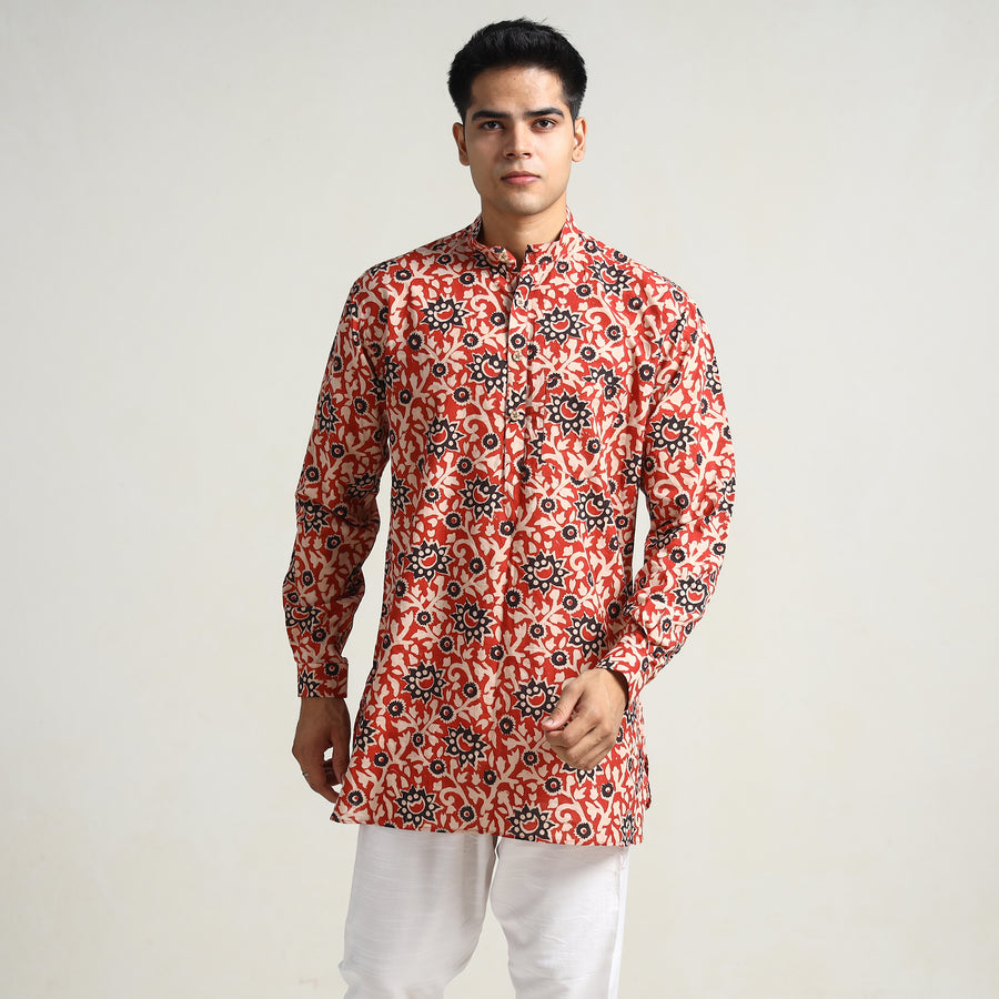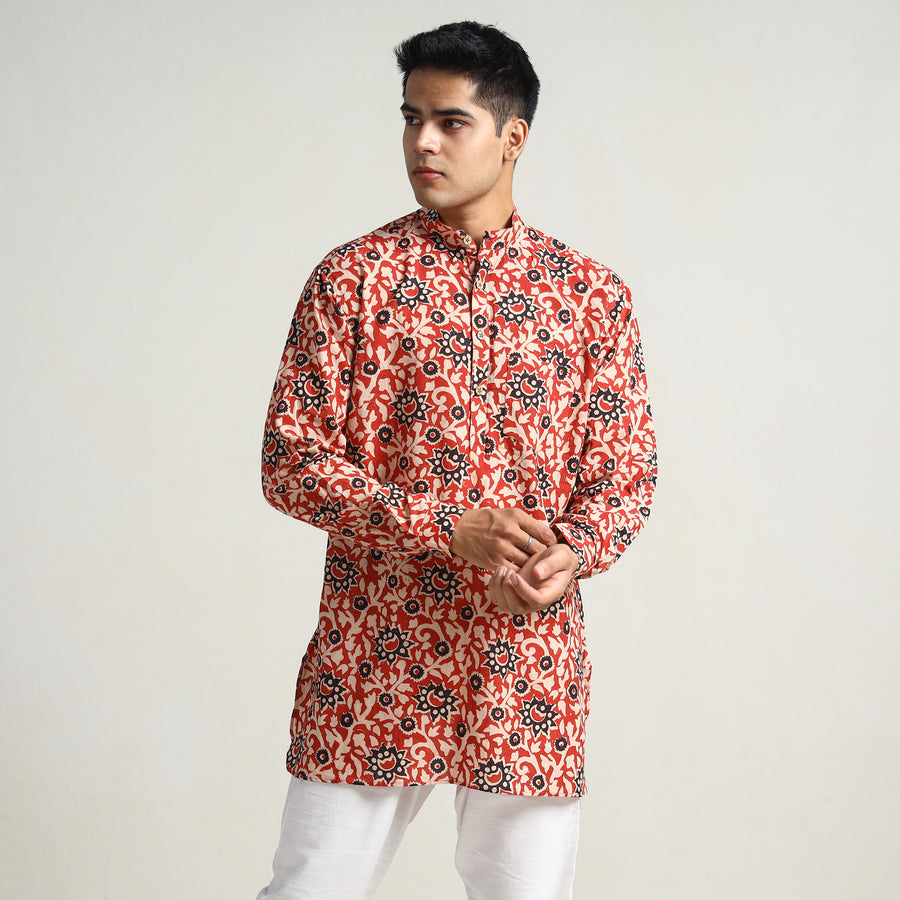 Bagru block printed cotton men's short kurta with one chest pocket, makes you comfortable with ease all day long. It's made from cotton fabric and features full sleeves, a front button placket. This casual kurta is perfect for your daily outing and for a special occasion. Made using natural dyes through traditional mud resist process by using hand carved wooden block practiced in Bagru, Rajasthan.