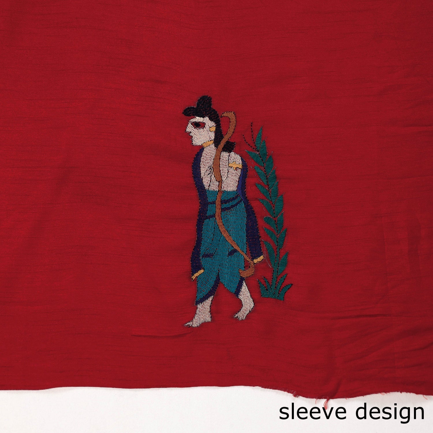 Fine quality red raw silk blouse material designed with contemporary patterns & has been hand embroidered using West Bengal's traditional craft technique of Kantha. You can get this stitched in your desired pattern and pair it up with your special sarees to complete a trendy and ethnic look.