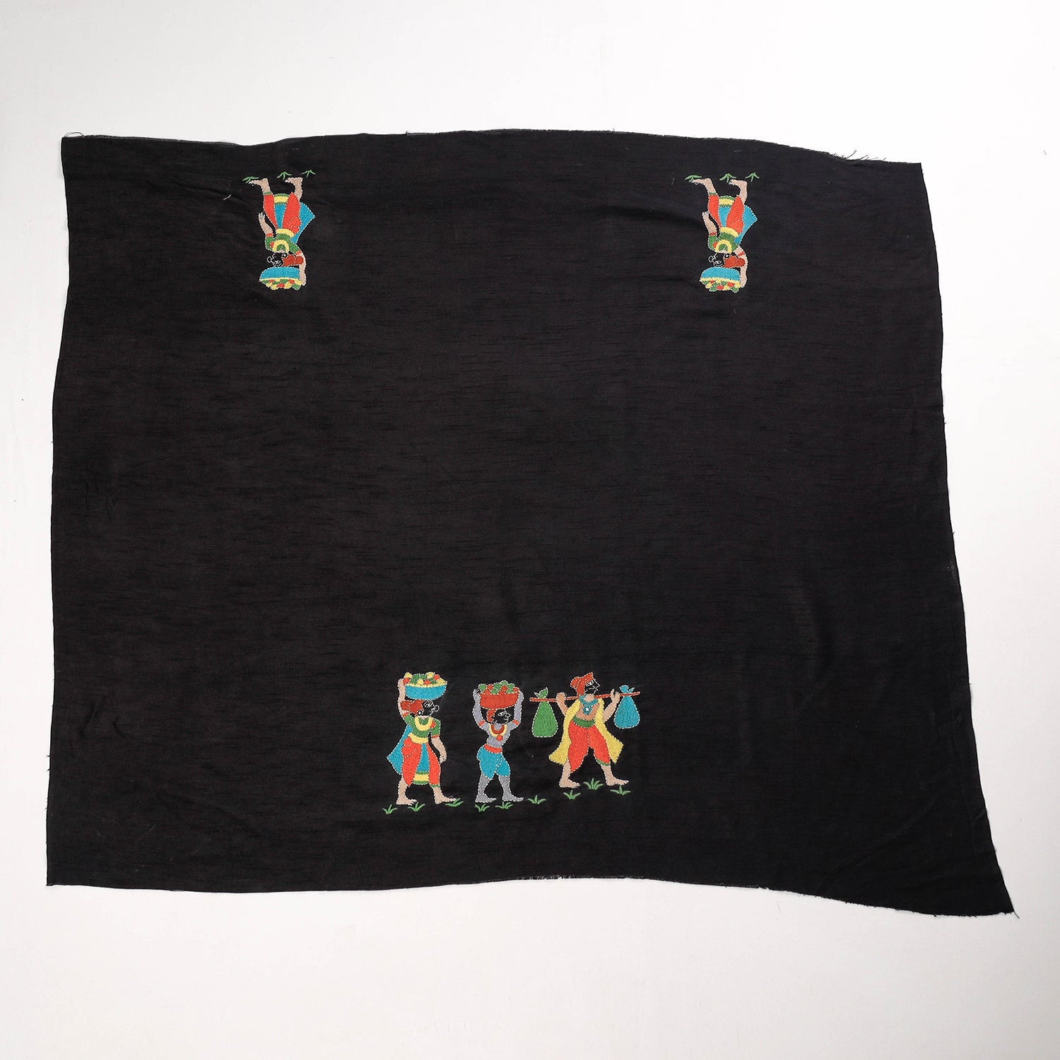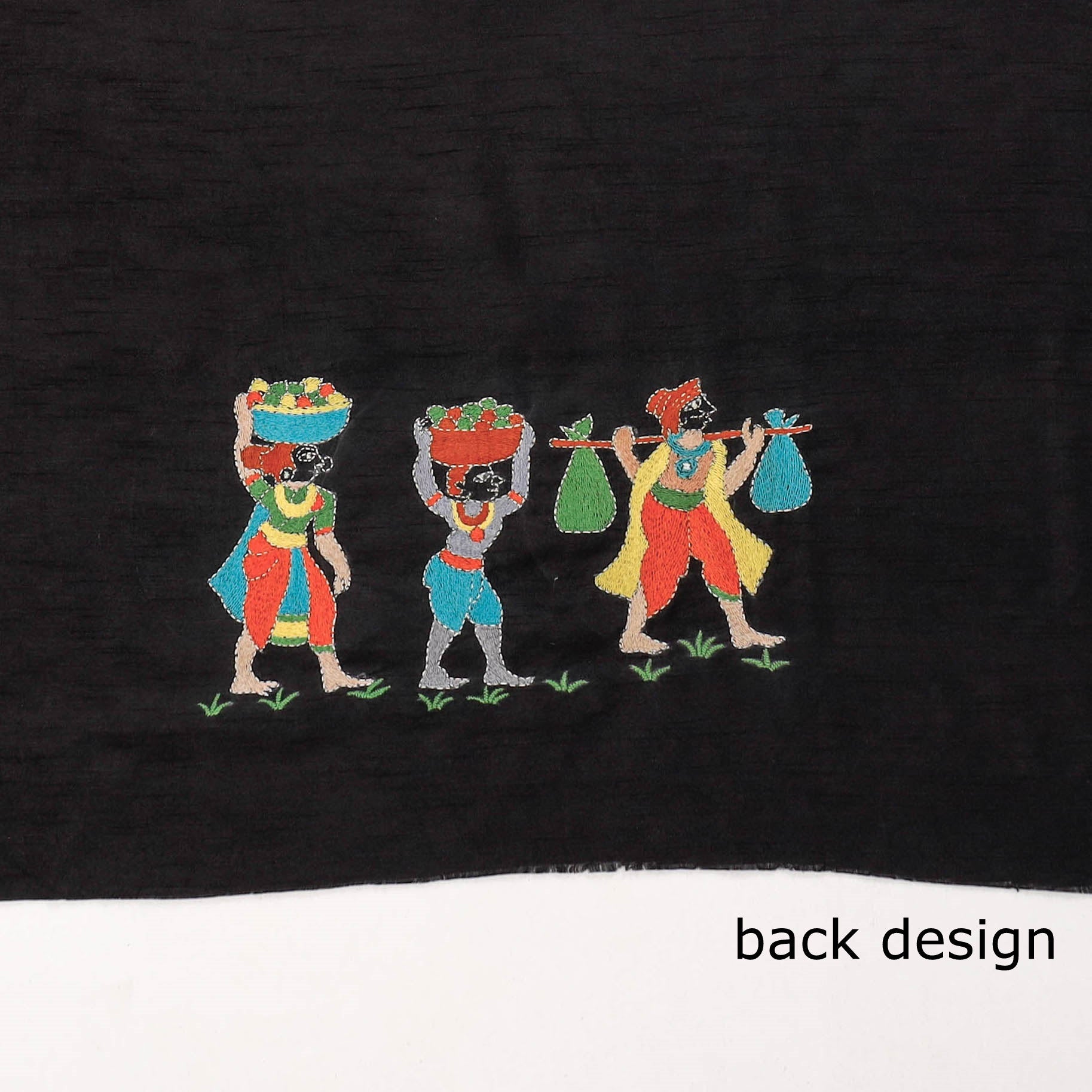 Fine quality black raw silk blouse material designed with contemporary patterns & has been hand embroidered using West Bengal's traditional craft technique of Kantha. You can get this stitched in your desired pattern and pair it up with your special sarees to complete a trendy and ethnic look.