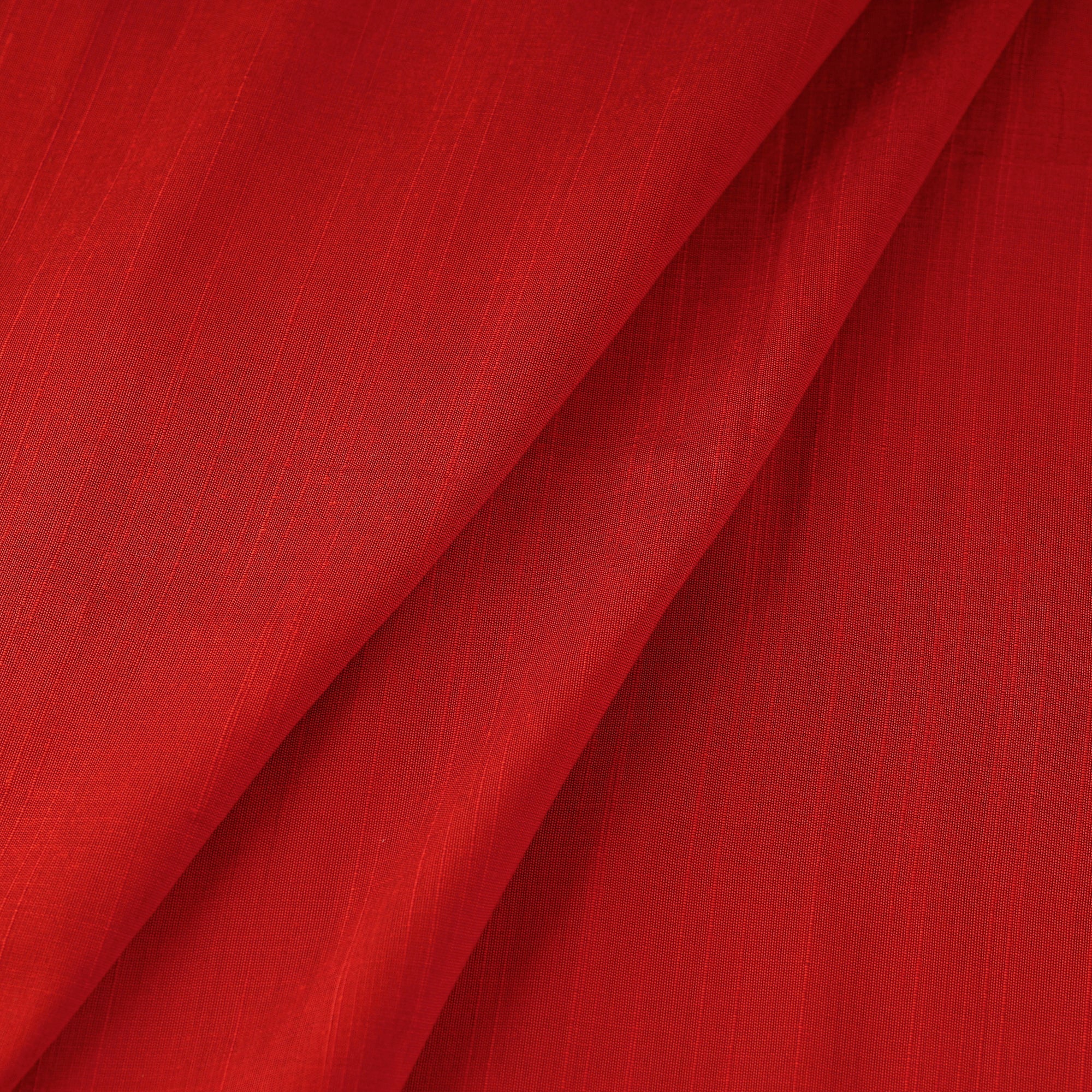 This red plain slub silk fabric is ideal for creating elegant garments, sarees, and traditional outfits. Made from a blend of viscose and polyester, it has a smooth, solid texture with no transparency. While it is not pure silk, it is made in a region known for silk textiles, giving it a unique place in textile production.