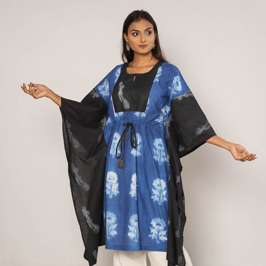 Fine quality shibori tie-dye cotton knee length kaftan. A traditional kaftan or caftan is a knee-length garment with long, flowing sleeves. It has an adjustable drawstring waist. These loose-fitting cotton kaftans are enhanced by a soft touch and beautiful tie-dye patterns. This dress will allow you to move with ease and comfort. The drawstring waist tie will give you the freedom to customize the fit to suit your unique shape.