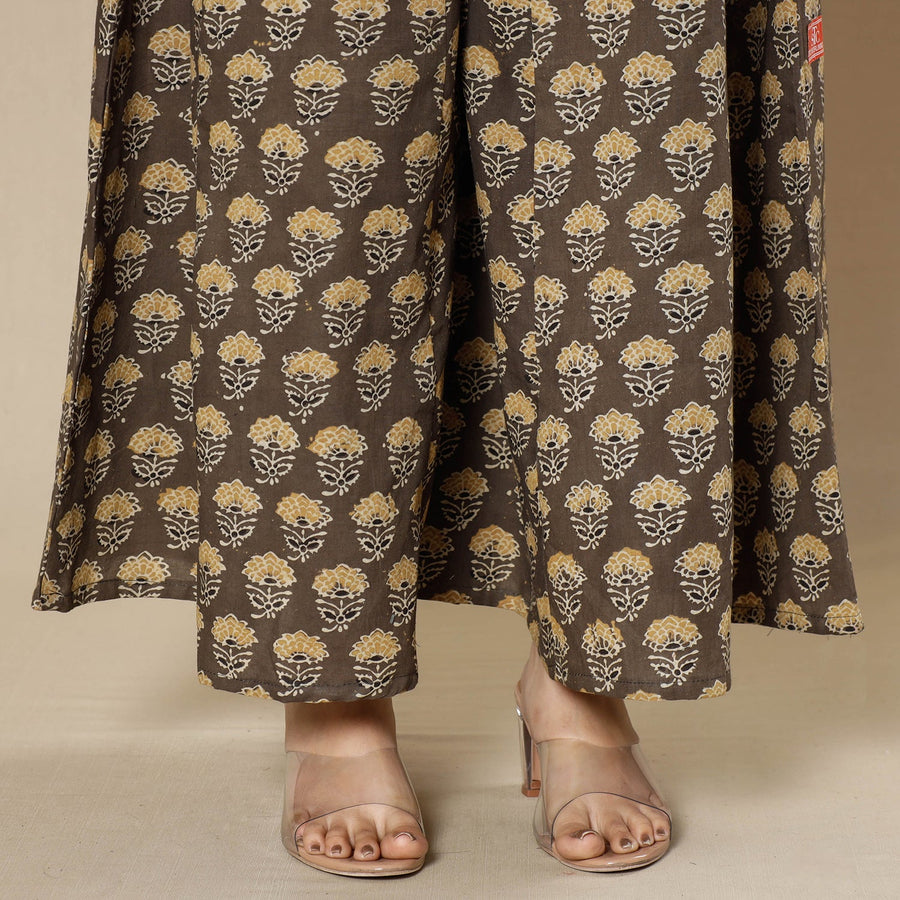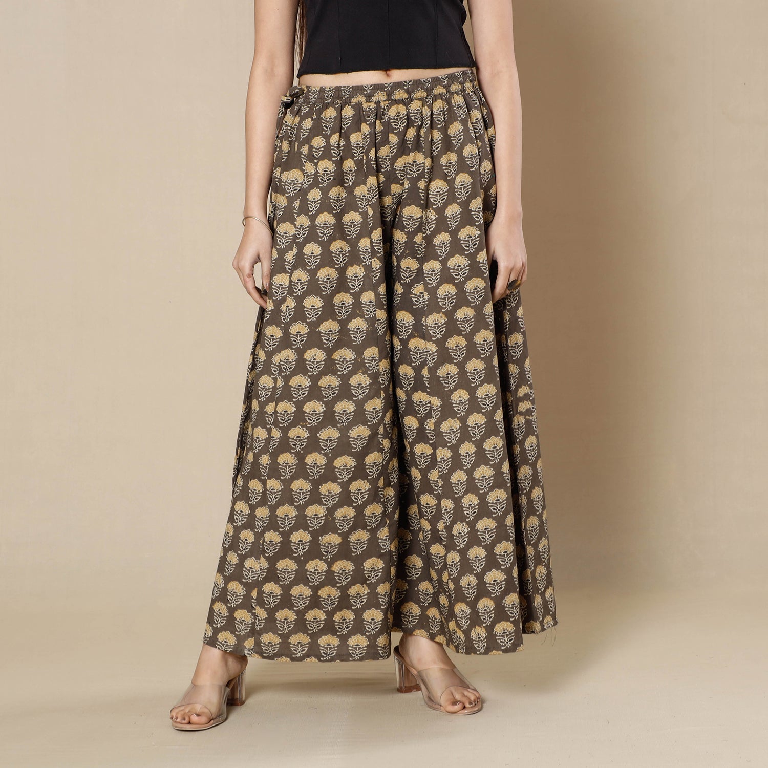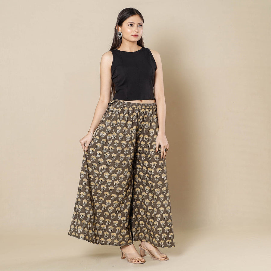 Look and feel beautiful in this Ajrakh hand block printed cotton flared palazzo, made from fine quality cotton. This palazzo comes with featuring an elasticated waistband. This palazzo makes you comfortable and stylish enough to wear all day long.