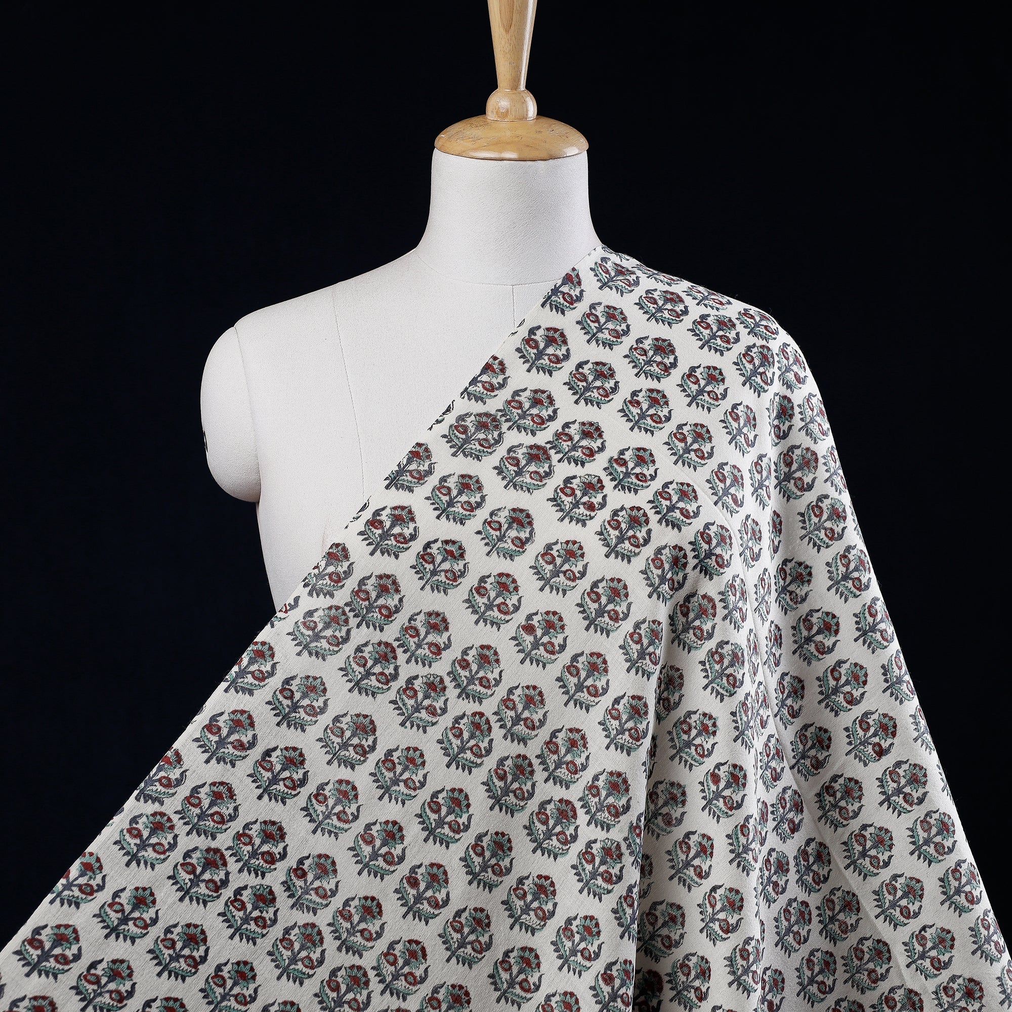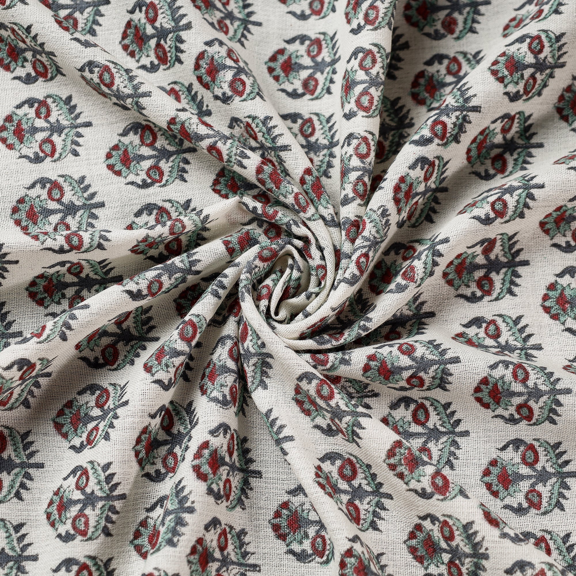 Fine quality cream with florets sanganeri hand block printed Kutch woolen fabric. Sanganeri is a hand-block printing technique originating from Sanganer, a village in the southern part of Jaipur, Rajasthan. Bleed free VAT dyes used. Pure handwoven Kutch woolen fabric woven in Kutch, Gujrat, and hand block prints by Chogan's in Jaipur, Rajasthan .