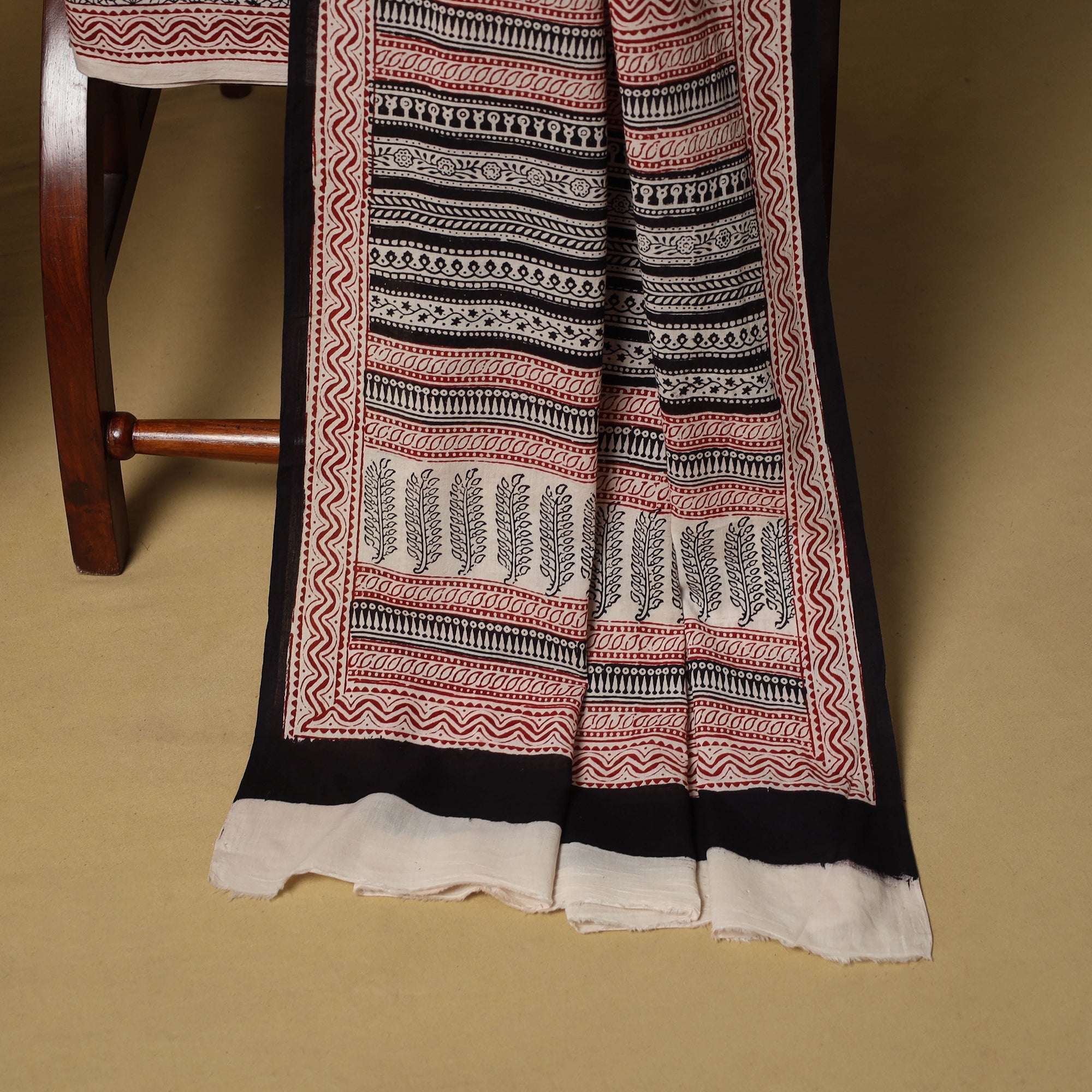 Bagh layouts are dramatic with the use of black and red alternately on a white background. Its production process is manually painstaking. Though the techniques and designs are age-old the prints retain their contemporary appeal.
