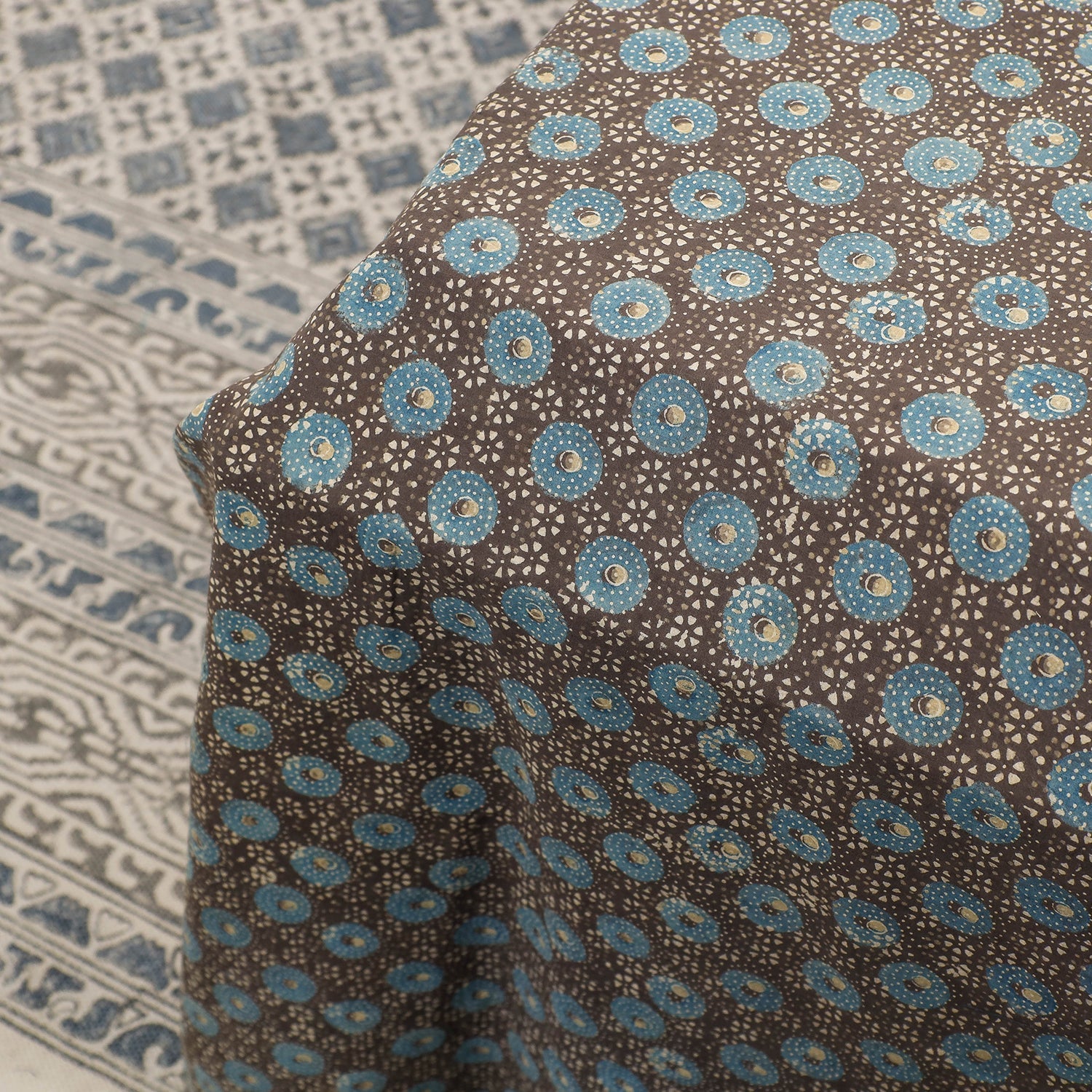 Ajrakh is a well-known traditional vegetable dyeing that resists block-printing techniques on cloth. Originated in Kutch, It is nearly around 4,500 years old practised by Khatri community of Kutch and Sikh.