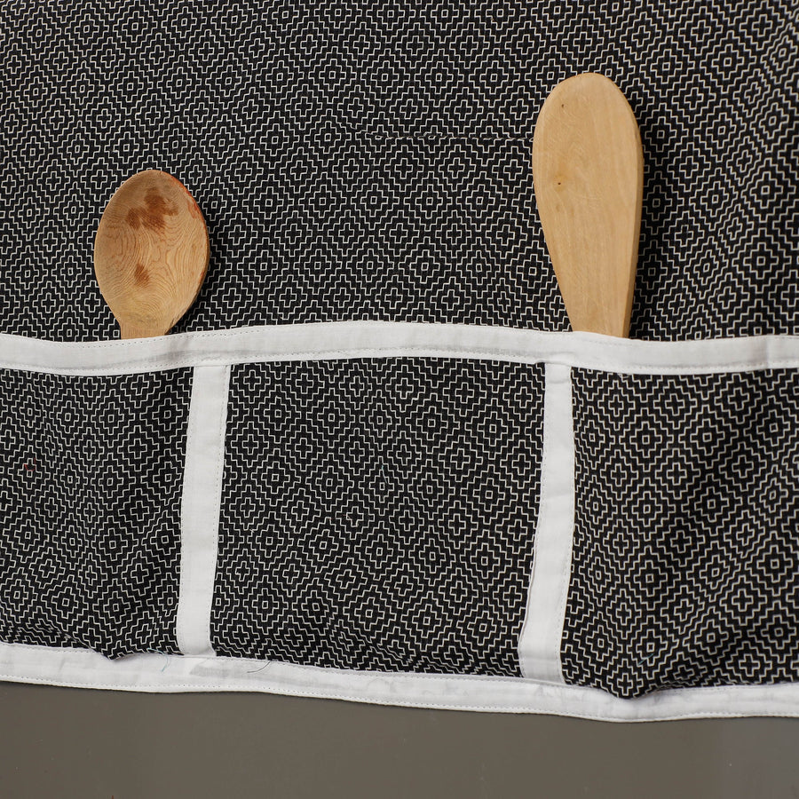 Fine quality black Jacquard cotton fridge top cover with multiple pockets textured with handmade textiles of India. It has six utility side pockets to keep your daily essentials.