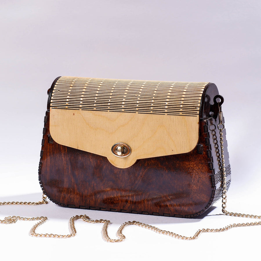 This classic brown handpainted birch wood sling bag is skillfully handcrafted by the artisans of Indore, Madhya Pradesh. The specialty of this sling bag is its intricate, hand-carved designs. This sling bag has a single compartment with velvet lining inside fit to carry all your essentials. It comes with a detachable sling. This sling bag is durable and portable with a flexible flap, so you can carry it anywhere.