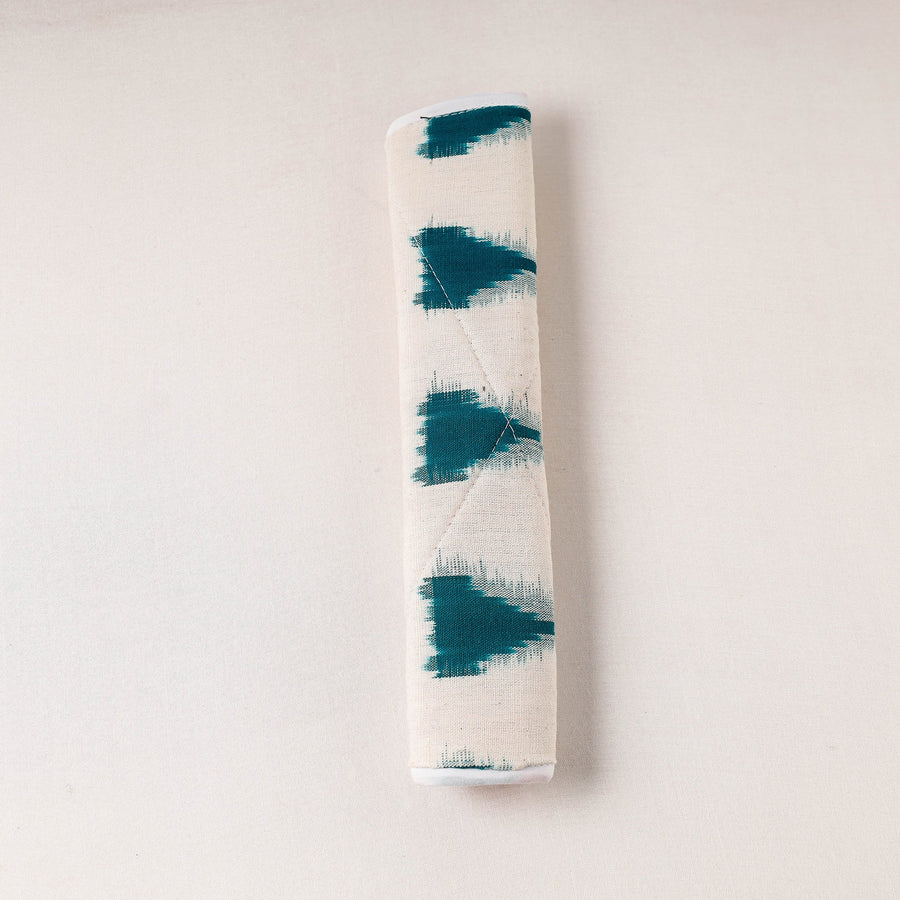 Fine quality red fridge handle cover / seat belt cover, made from pochampally ikat cotton fabric textured with handmade textiles of India.