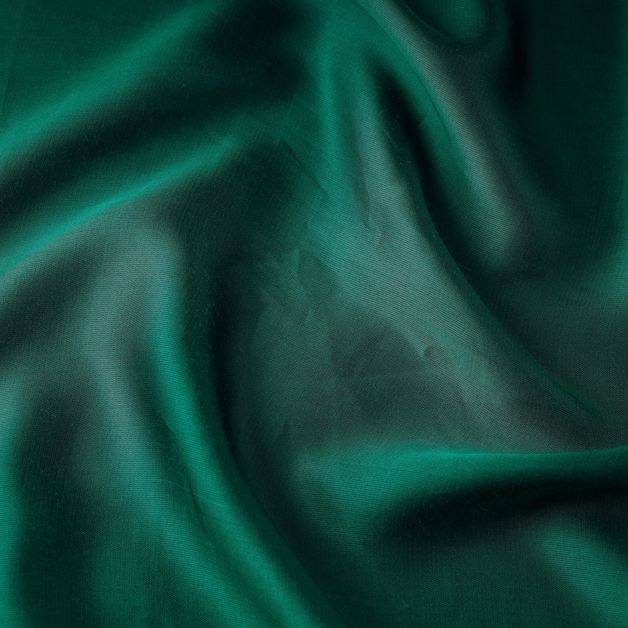 Fine quality green pure modal silk plain-dyed fabric from Kutch, known for its fine quality. Modal silk is a blend of modal fibres and silk yarns, creating a soft, shiny, and highly lustrous fabric. It provides the luxurious feel of silk and the comfort of cotton modal. The fabric is perfect for creating elegant and comfortable clothing items.