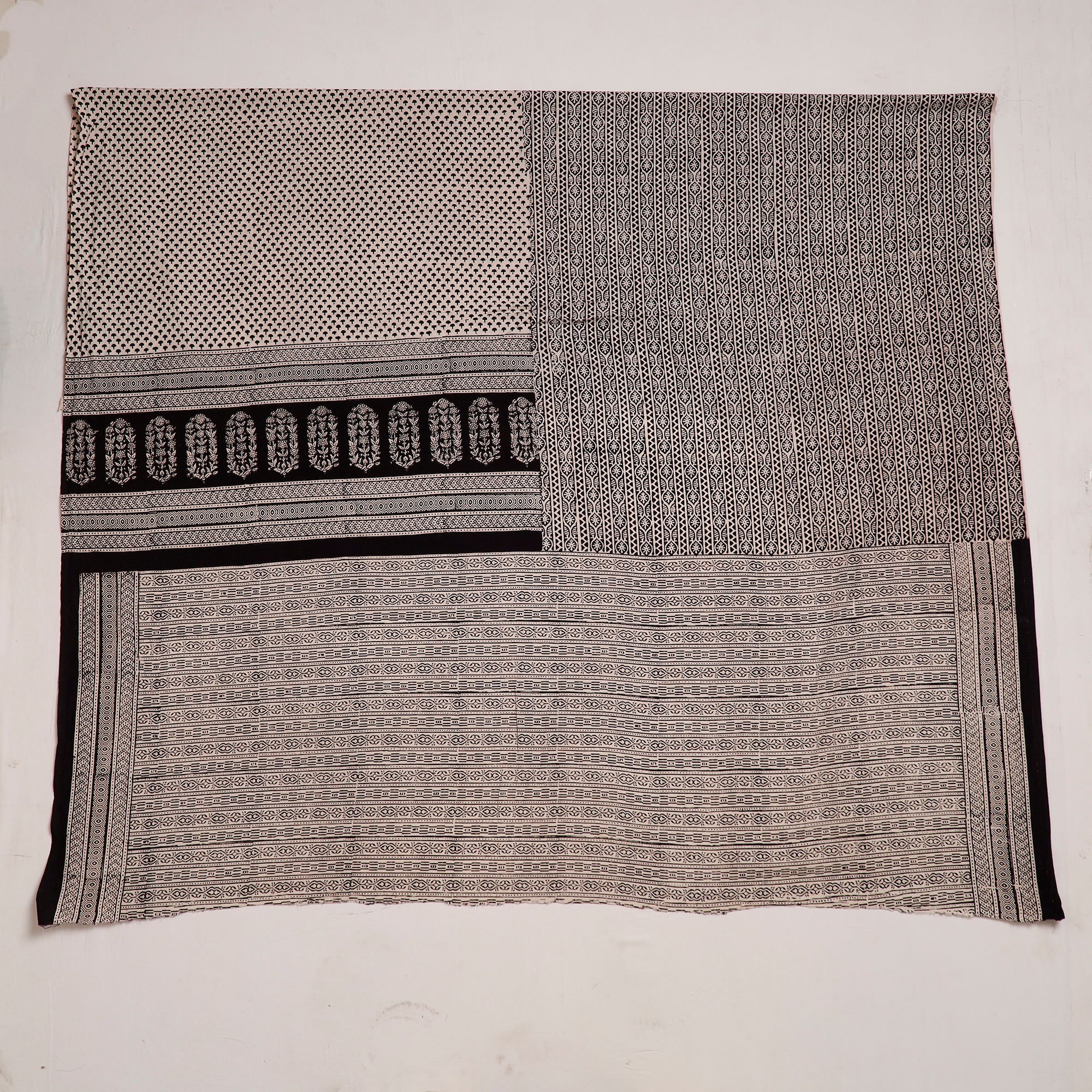 Bagh layouts are dramatic with the use of black and red alternately on a white background. Its production process is manually painstaking. Though the techniques and designs are age-old the prints retain their contemporary appeal.