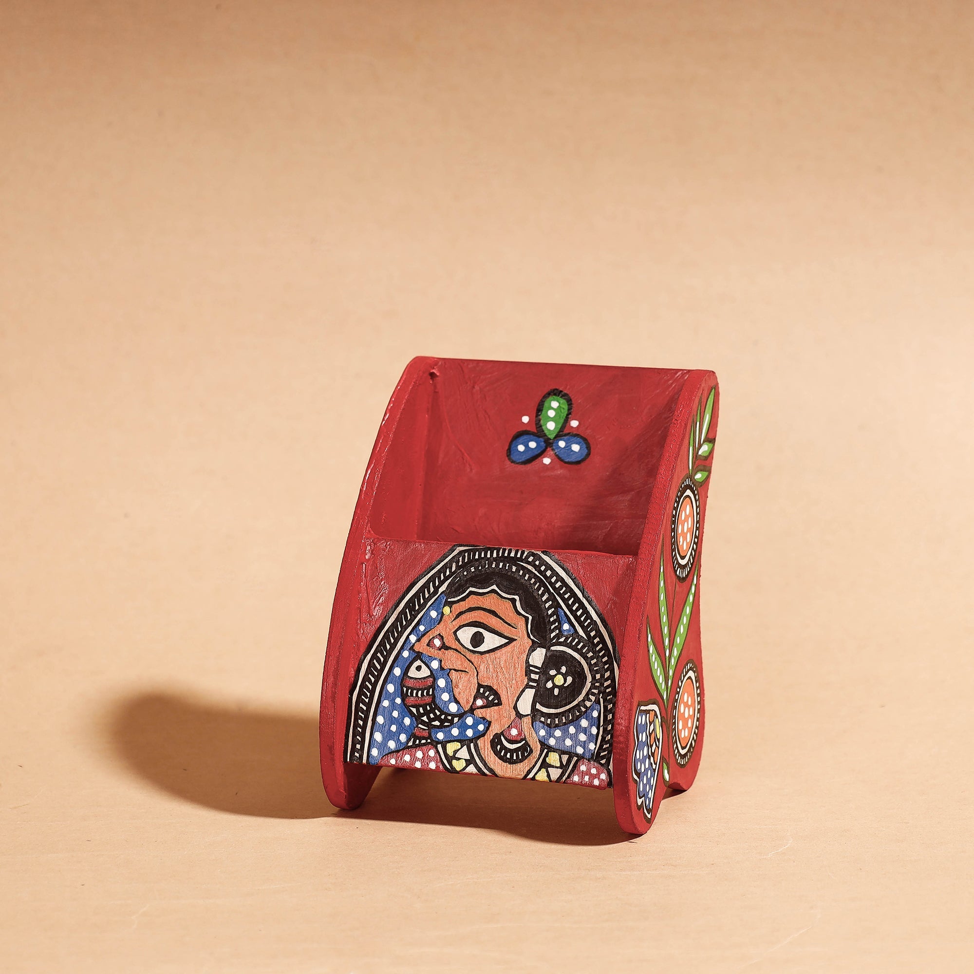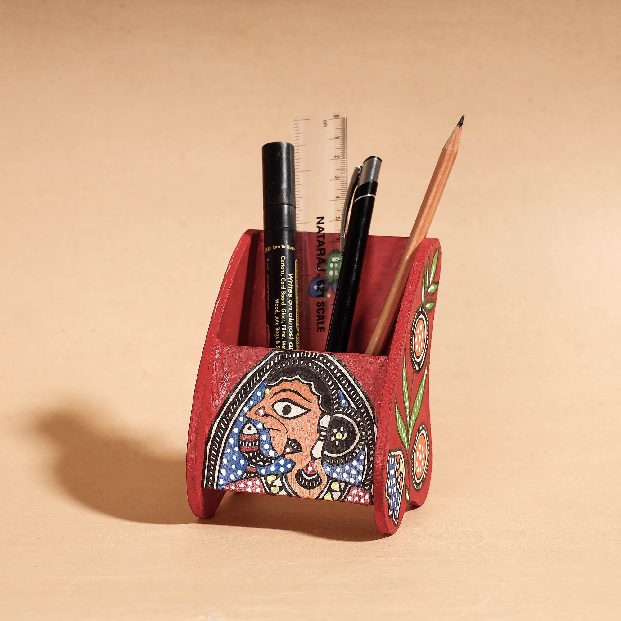 This MDF wooden pen stand is a unique piece of art, featuring beautifully hand-painted Madhubani motifs in vibrant fabric colours. Expertly crafted by master artisan Hira Devi from Bihar, this pen stand is both functional and visually stunning, making it a great addition to any desk or workspace.