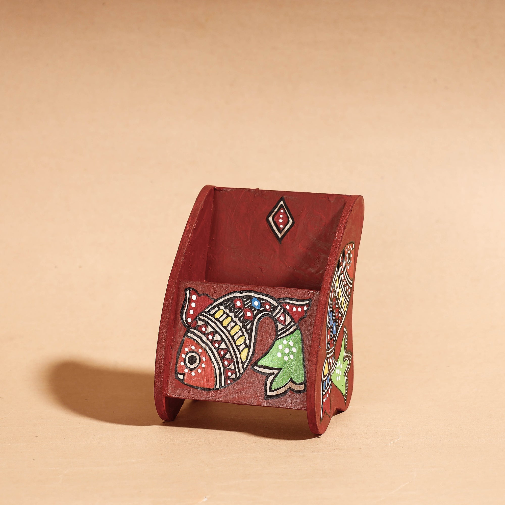 This MDF wooden pen stand is a unique piece of art, featuring beautifully hand-painted Madhubani motifs in vibrant fabric colours. Expertly crafted by master artisan Hira Devi from Bihar, this pen stand is both functional and visually stunning, making it a great addition to any desk or workspace.