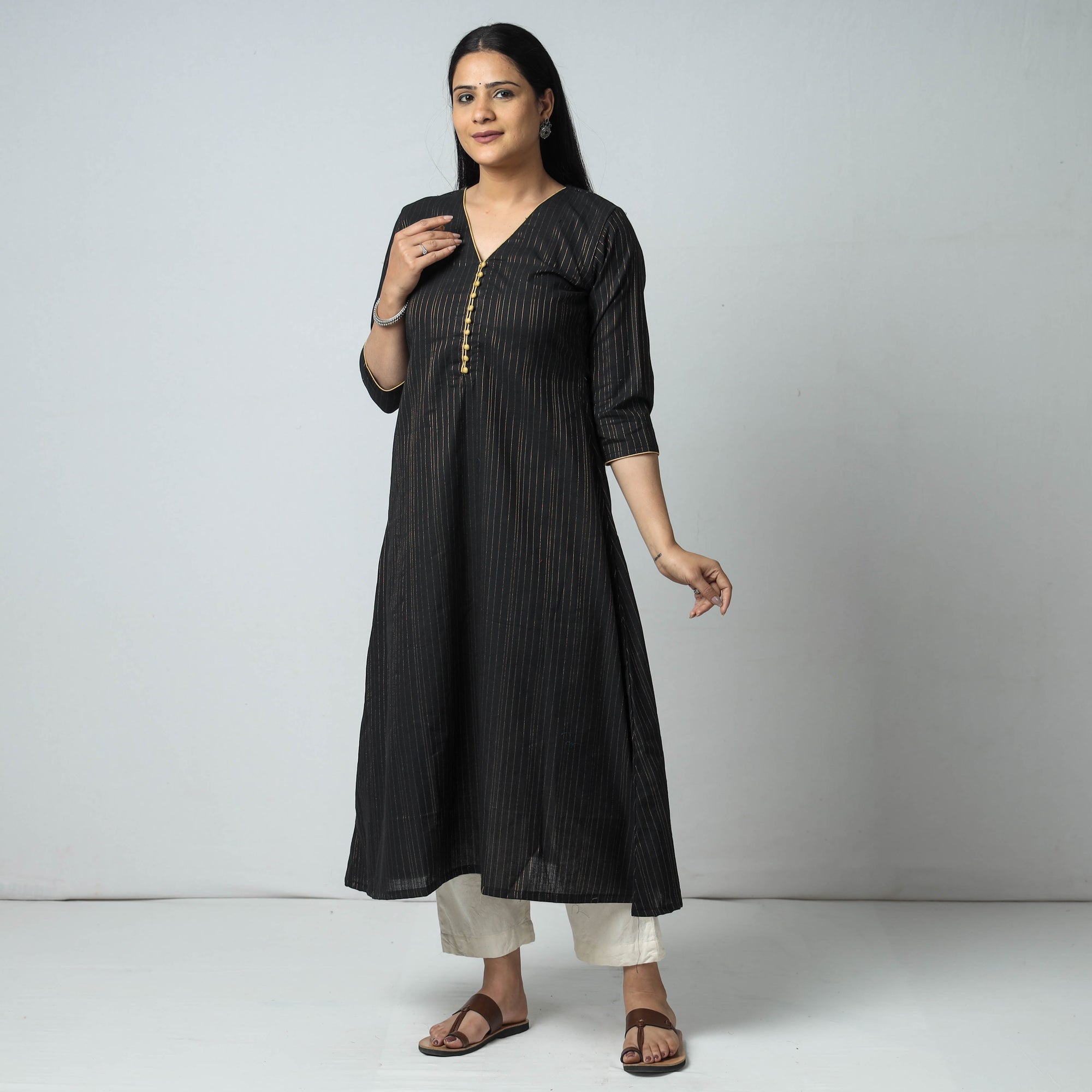 Look and feel beautiful in this uniquely designed jacquard cotton long kurta with one side pocket. This cotton kurta makes you comfortable with easy all day long.