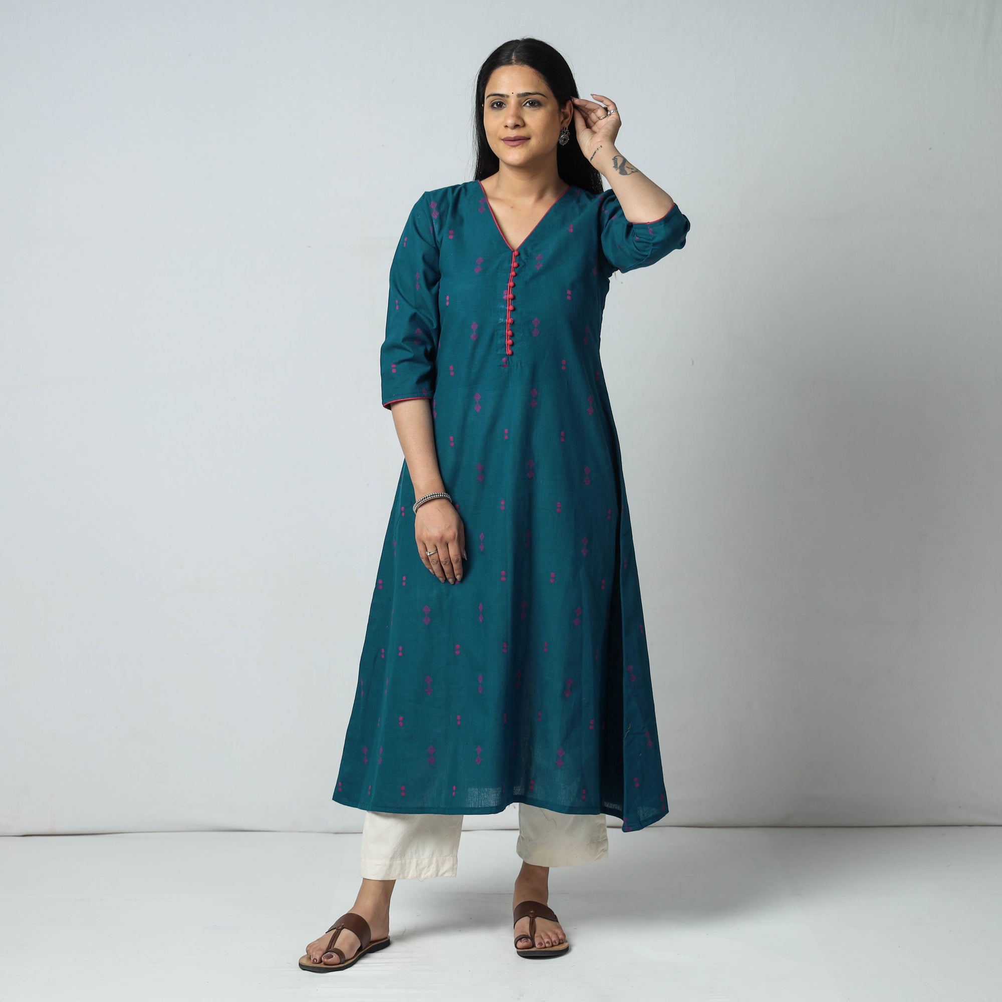 Look and feel beautiful in this uniquely designed jacquard cotton long Kurta with one side pocket. This cotton Kurta makes you comfortable with easy all day long.