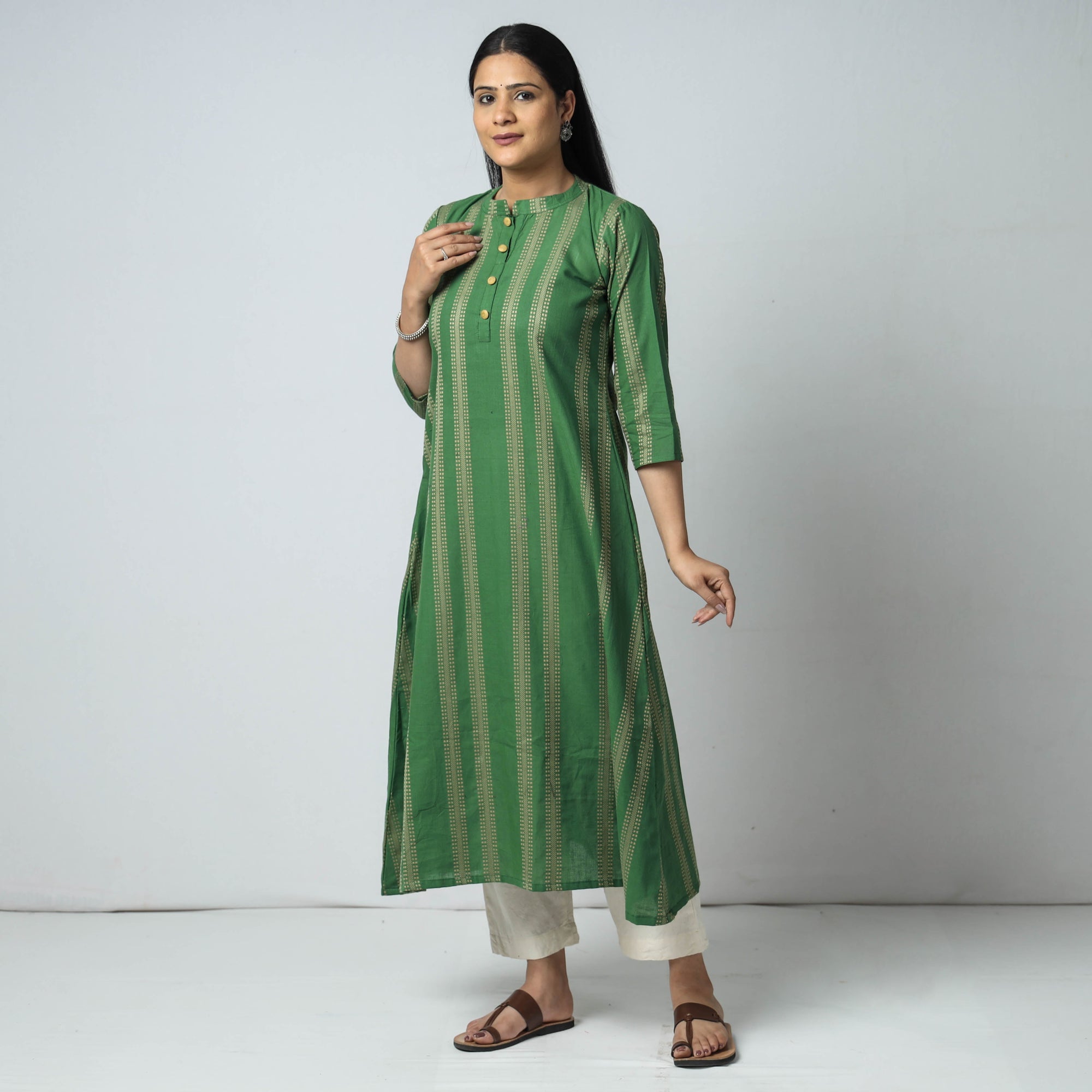 Look and feel beautiful in this uniquely designed jacquard cotton long kurta with one side pocket. This cotton kurta makes you comfortable with easy all day long.