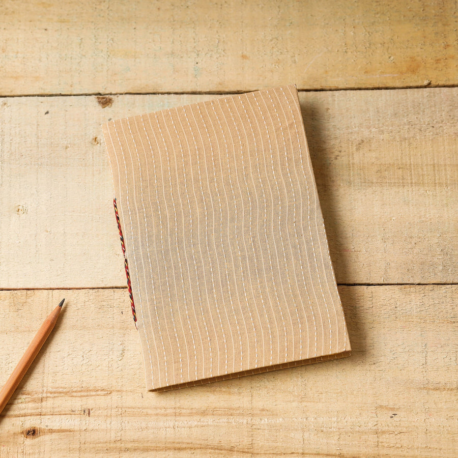 | Material | This hardbound notebook features a cover made of brown kantha stitch cotton fabric with handmade paper pages. The paper is eco-friendly, made from recycled cotton, paper, and other natural fiber waste without the use of chemicals. Master artisans handcraft each notebook with attention to detail using traditional bookbinding techniques. |