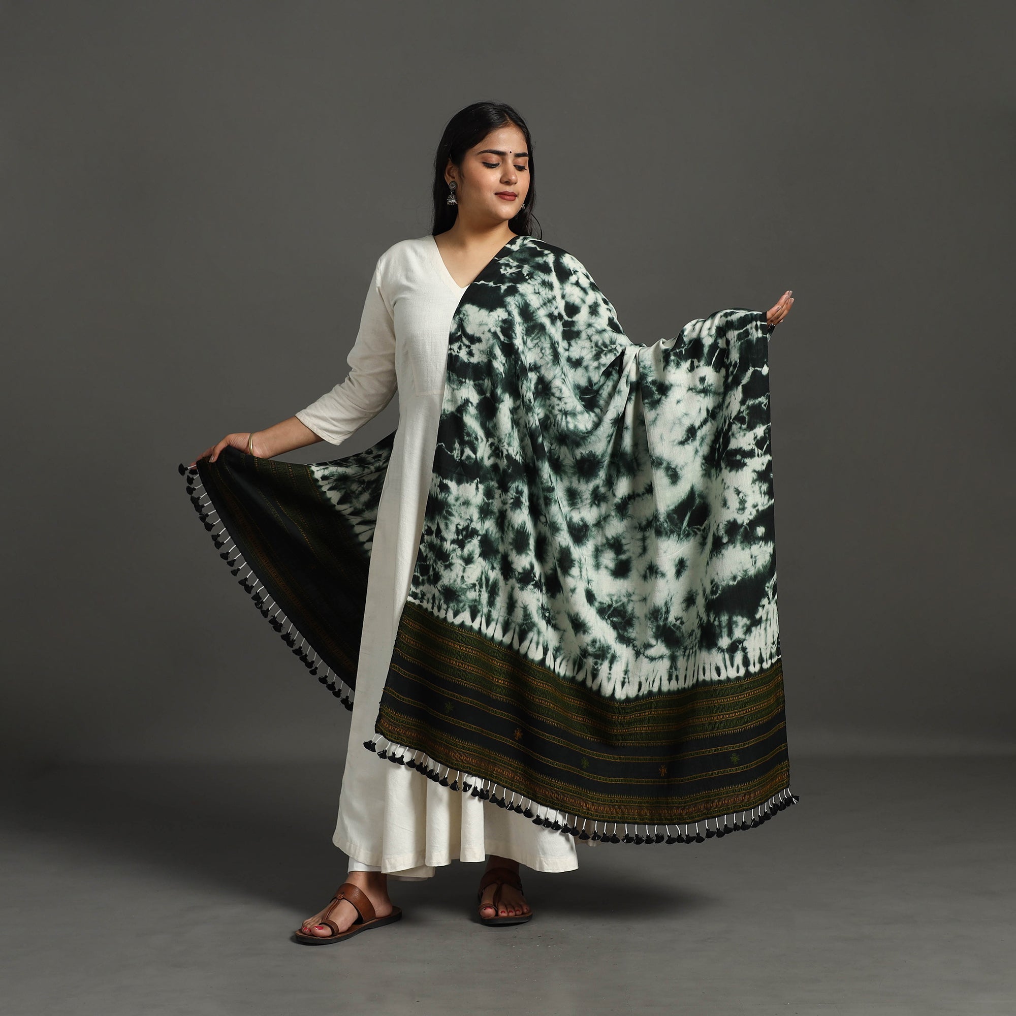 Fine quality green kutch bhujodi weaving handloom pure cotton dupatta with tassels. Bhujodi' weaving is a craft that takes its name from 'Bhujodi', a small village in 'Kutch' where this craft is practiced. This village of weavers is famous for its exquisitely woven traditional textiles.