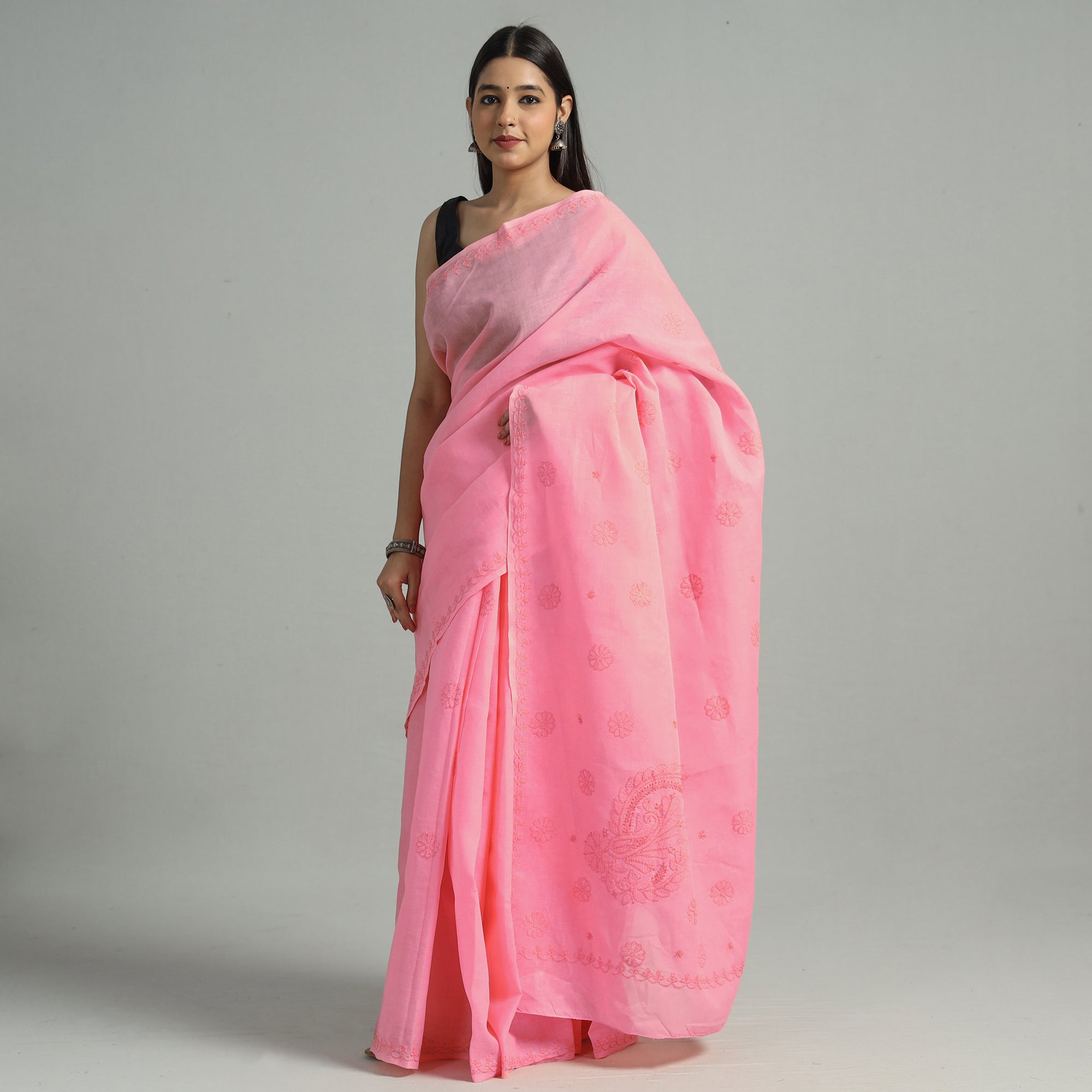 Experience the elegance of traditional Lucknowi chikankari hand embroidery with this terivoile x cotton saree. Delicate and intricate, the embroidery is carefully crafted onto a pastel-coloured light cotton base, creating a stunning masterpiece. Perfect for any formal or festive occasion, this saree is a must-have addition to your wardrobe.